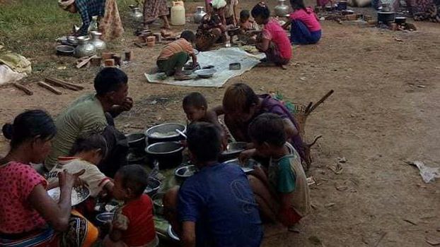 被战火笼罩的安镇(အမ်းမြို),米价疯涨,居民只能靠米粥充饥
