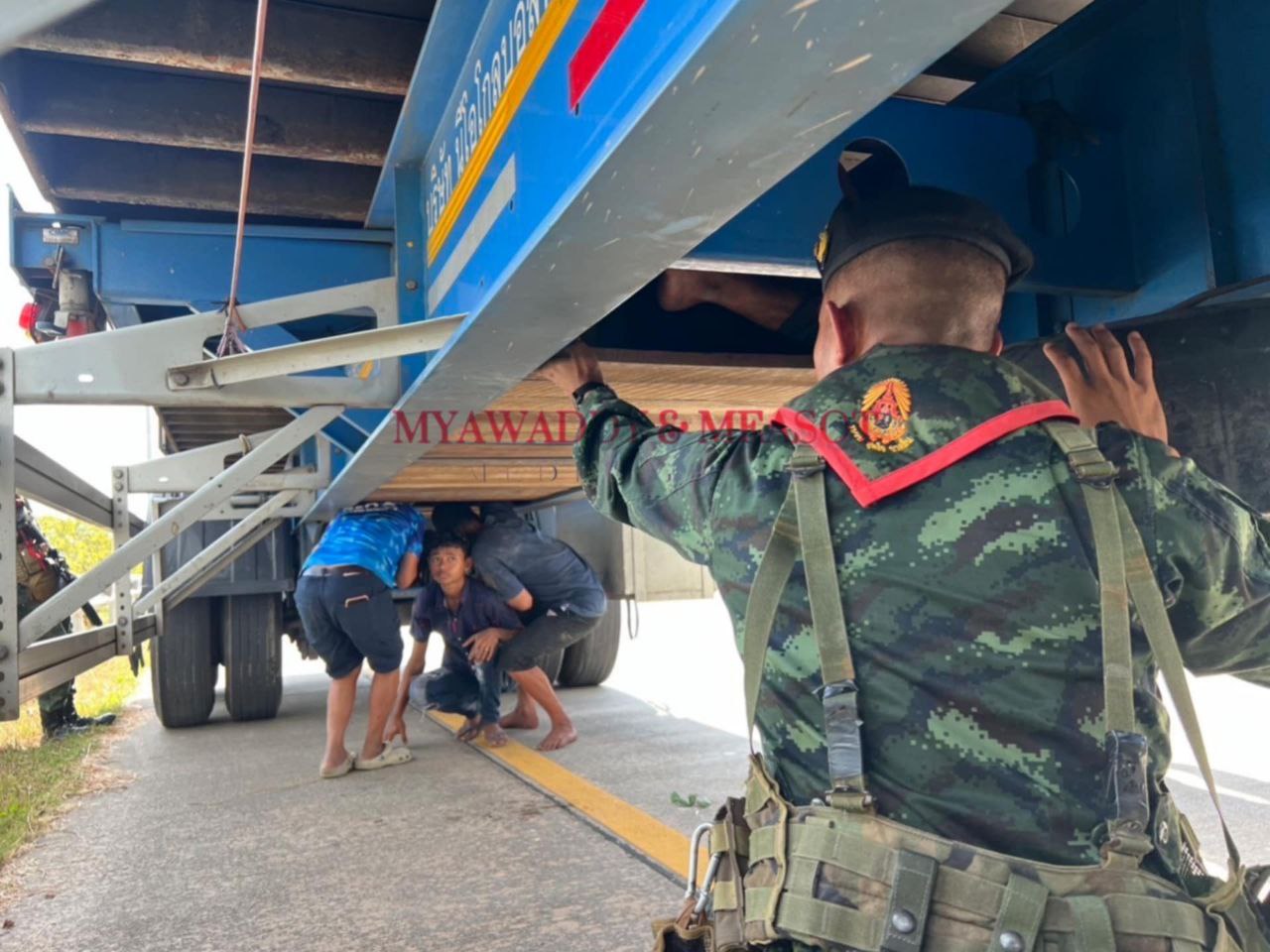 泰国警方于11月16日下午3点,前往妙瓦底送货的一辆泰国货车返回泰国湄索的时候,在泰缅2号友谊桥上,泰国警方搜捕到了8名藏在货车里的缅甸公民。