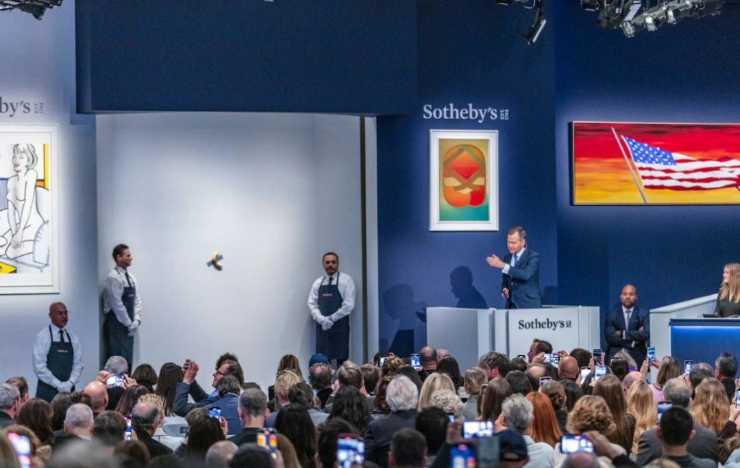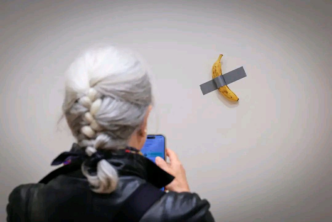 在美国纽约的苏富比拍卖行,艺术家毛里齐奥的名为《喜剧演员》(Comedian)的作品——一根用胶带贴在墙上的香蕉,以620万美元的高价成功拍卖。
