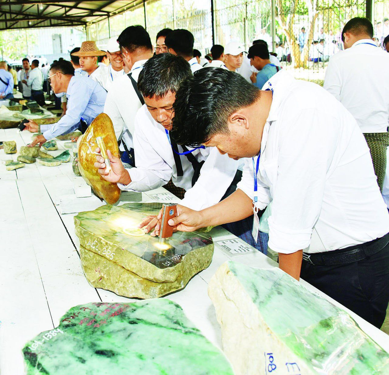 此次内比都珠宝展会中,编号从1至850的翡翠原石通过公开招标的方式出售给国内外珠宝商。据官方发布,展会第五天共售出613件翡翠原石,交易十分活跃。