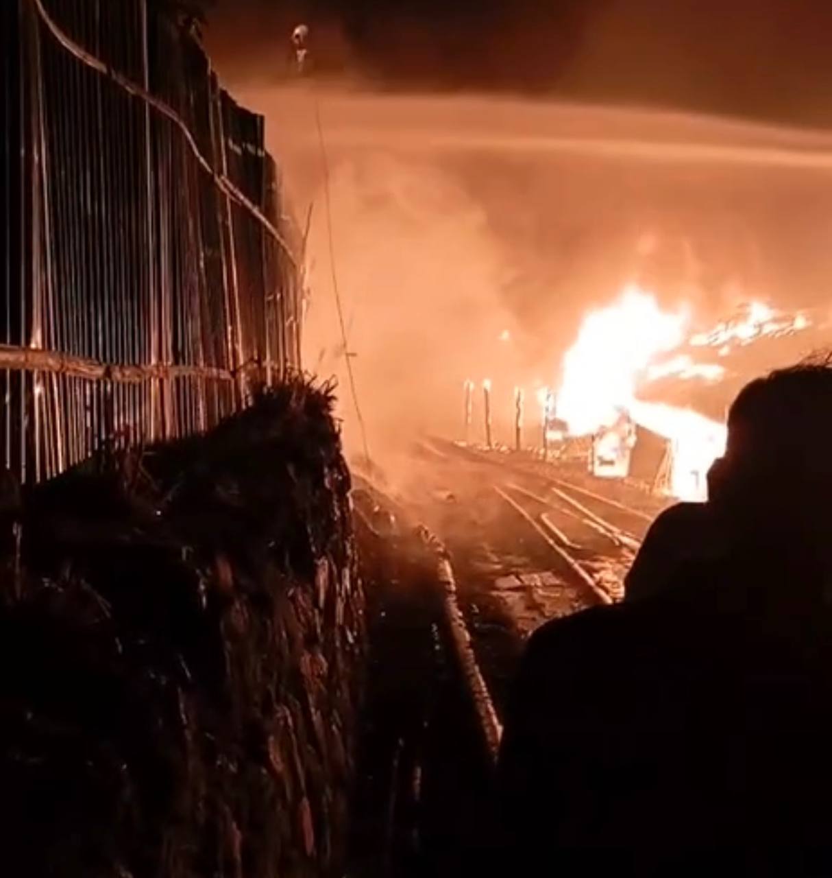 今天(12月1日)凌晨2点30分左右,掸北 南渡镇(နမ္မတူ) ဘော်တွင်း地区 一户人家因点燃的蜡烛引发火灾,导致房子被烧毁。