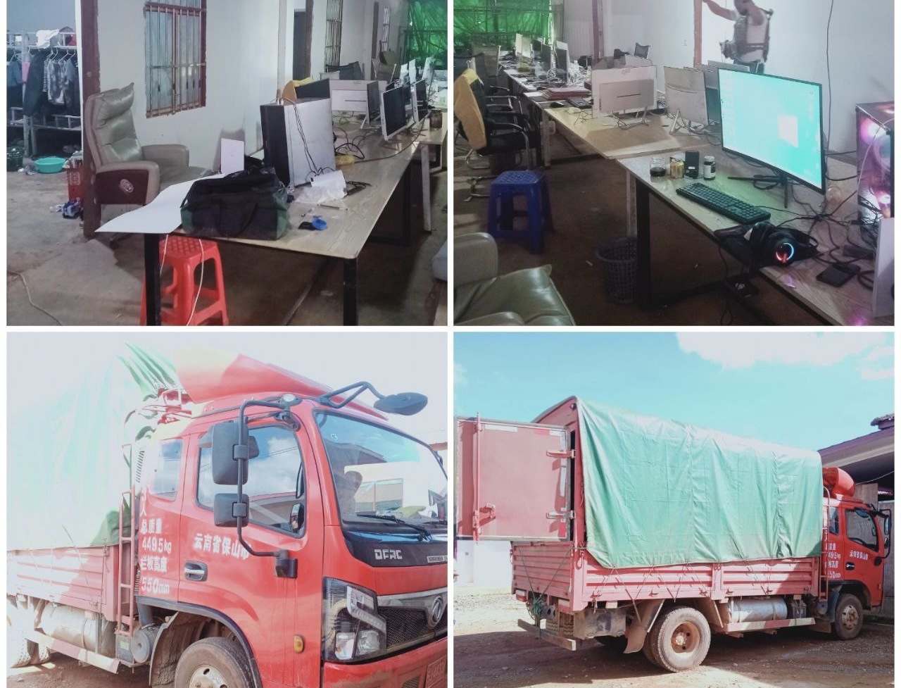 据悉,掸邦北部 当阳 瑙习村(နောင်ဟီး)的一个电诈窝点于昨天(12月2日)被捣毁,逮捕了18名中国公民和27名缅甸公民,并缴获了电脑、手机、星链网络等设备、1台发电机、2辆摩托、1辆卡车、手枪和步枪等武器。
