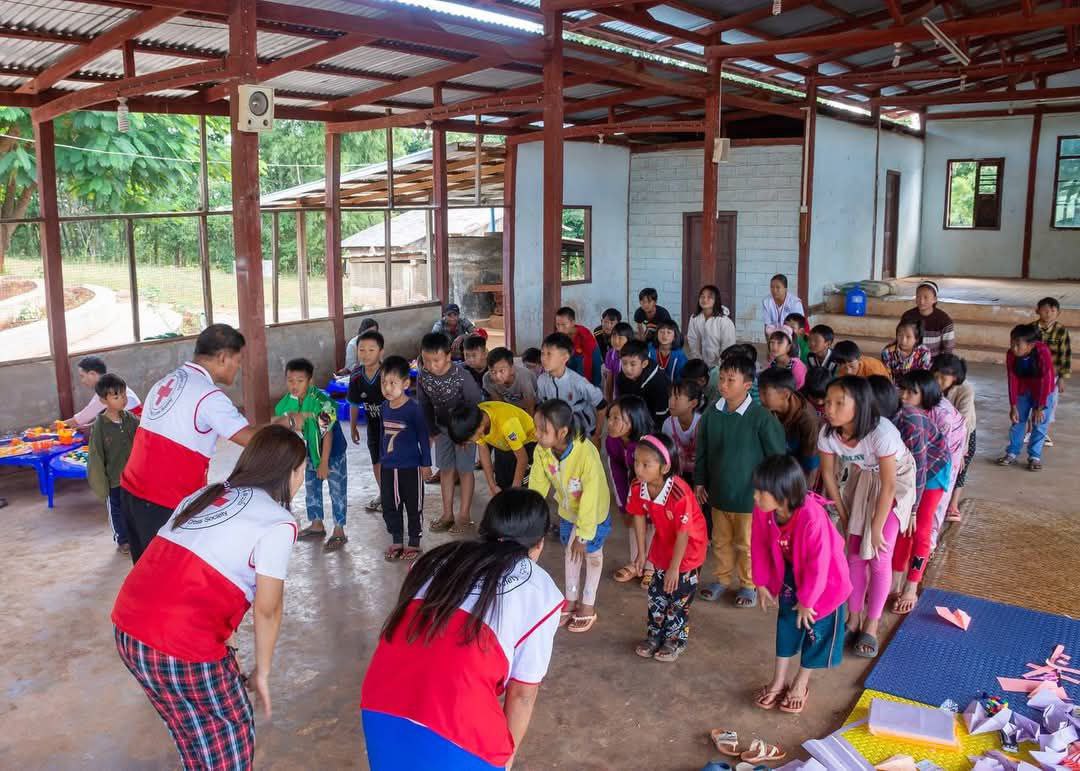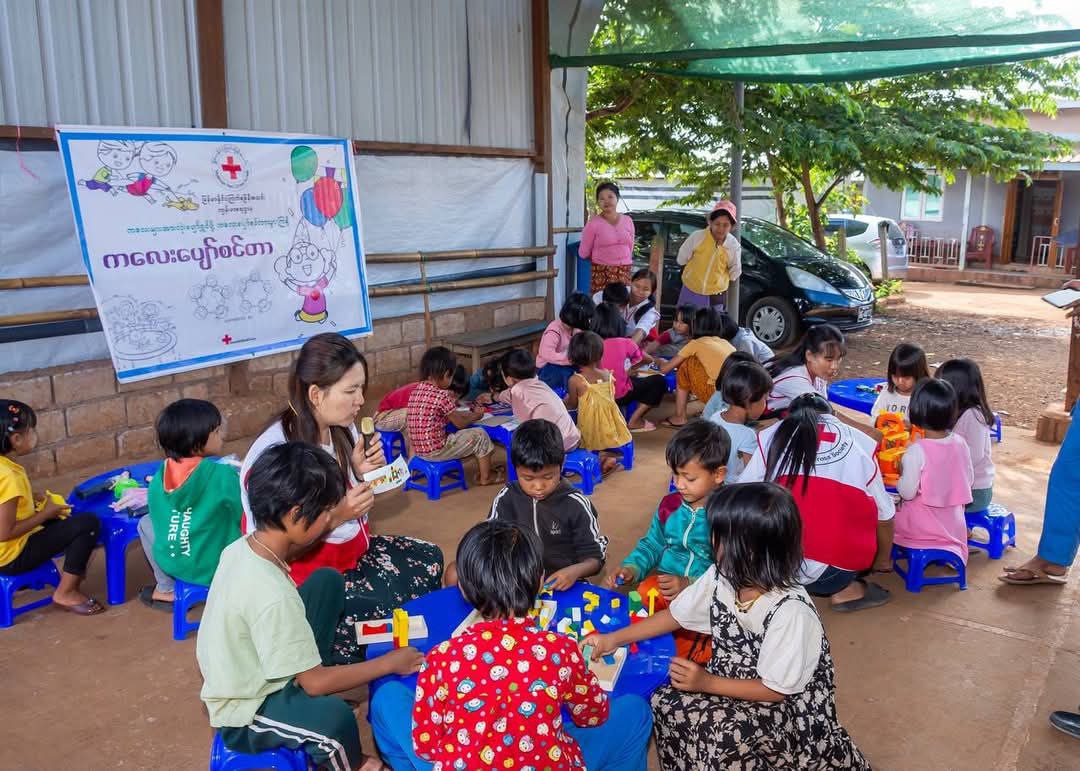 缅甸红十字会卫生部门正在进行一项人道主义援助,为了帮助因各种原因受到心理创伤的儿童。