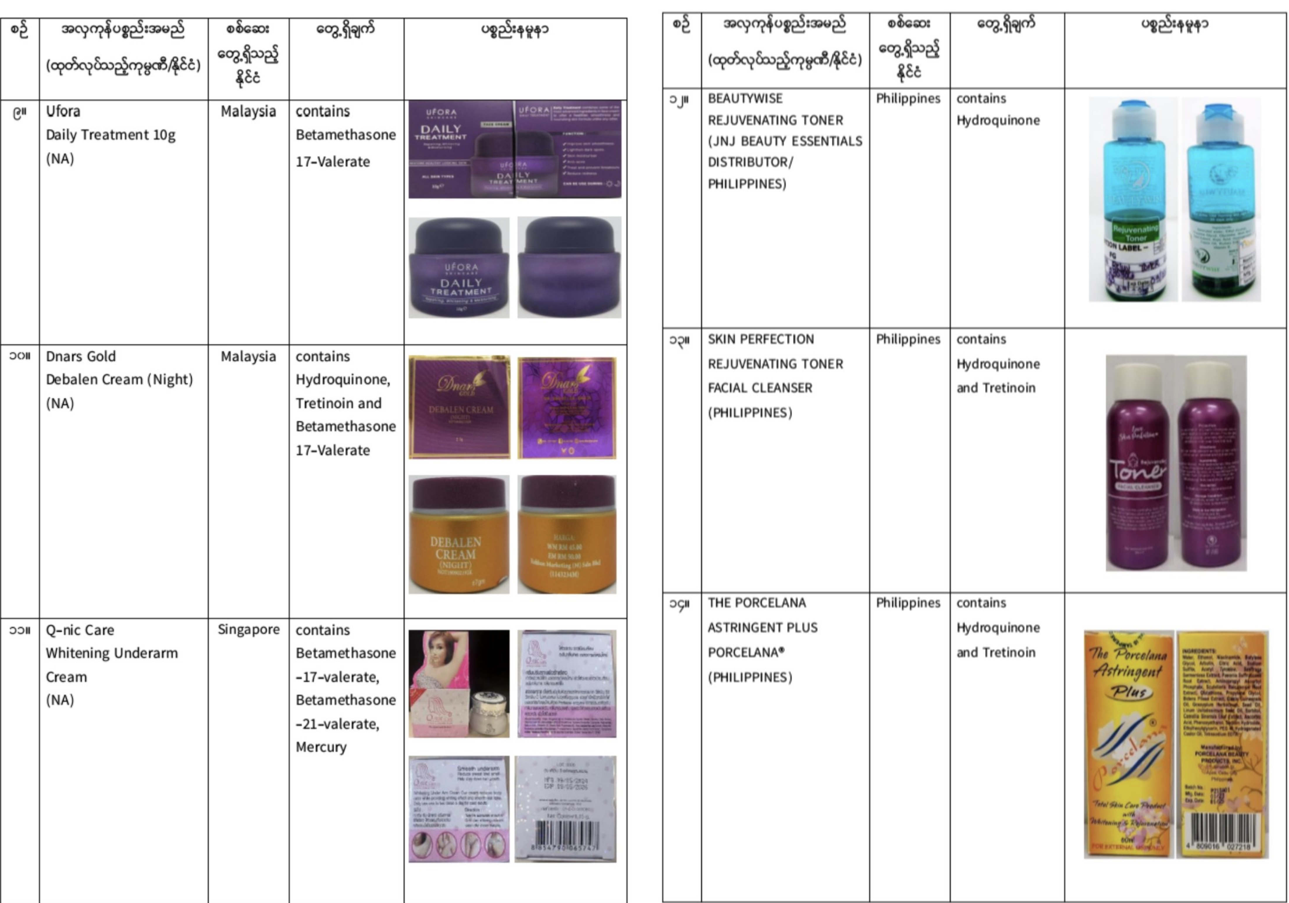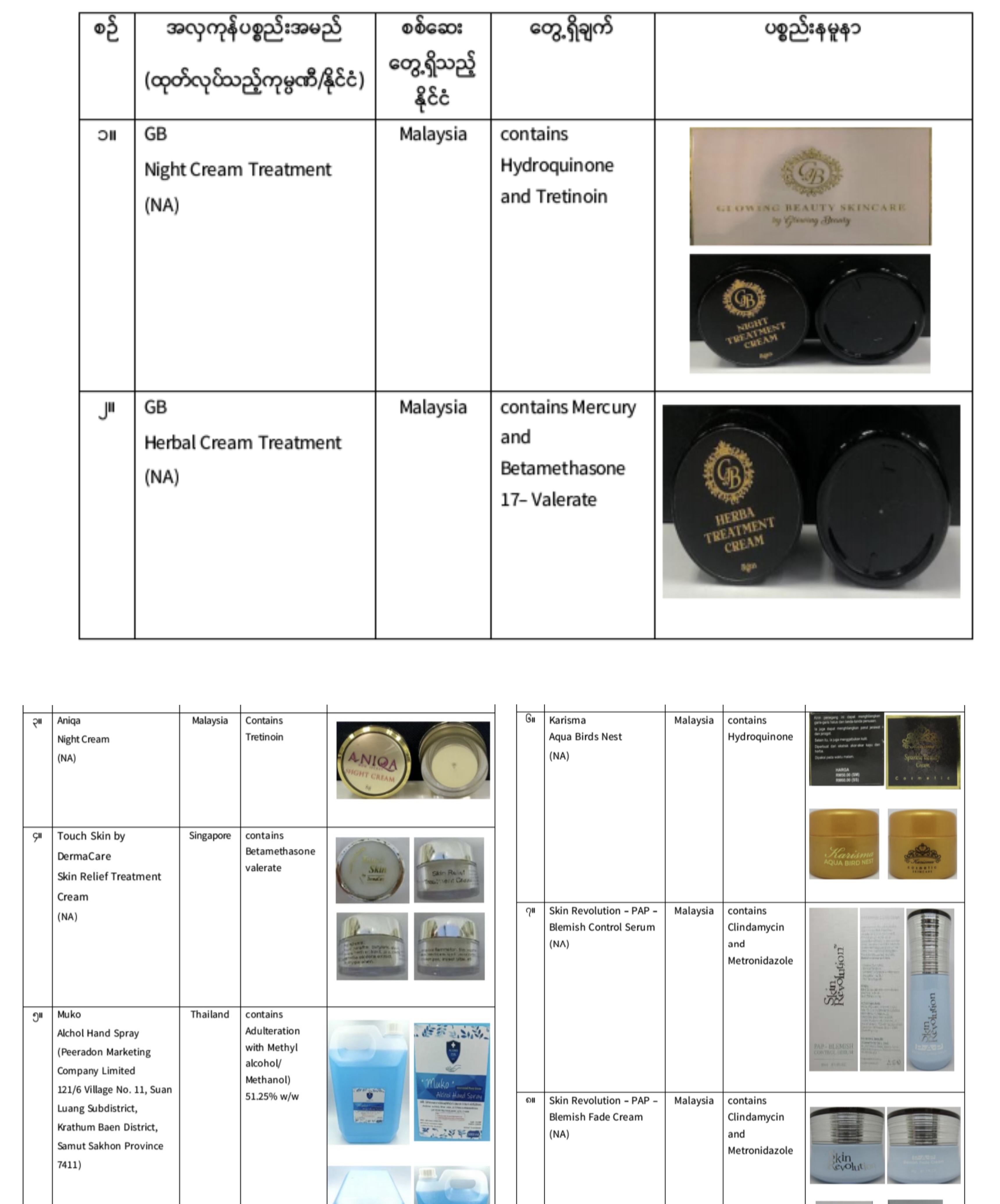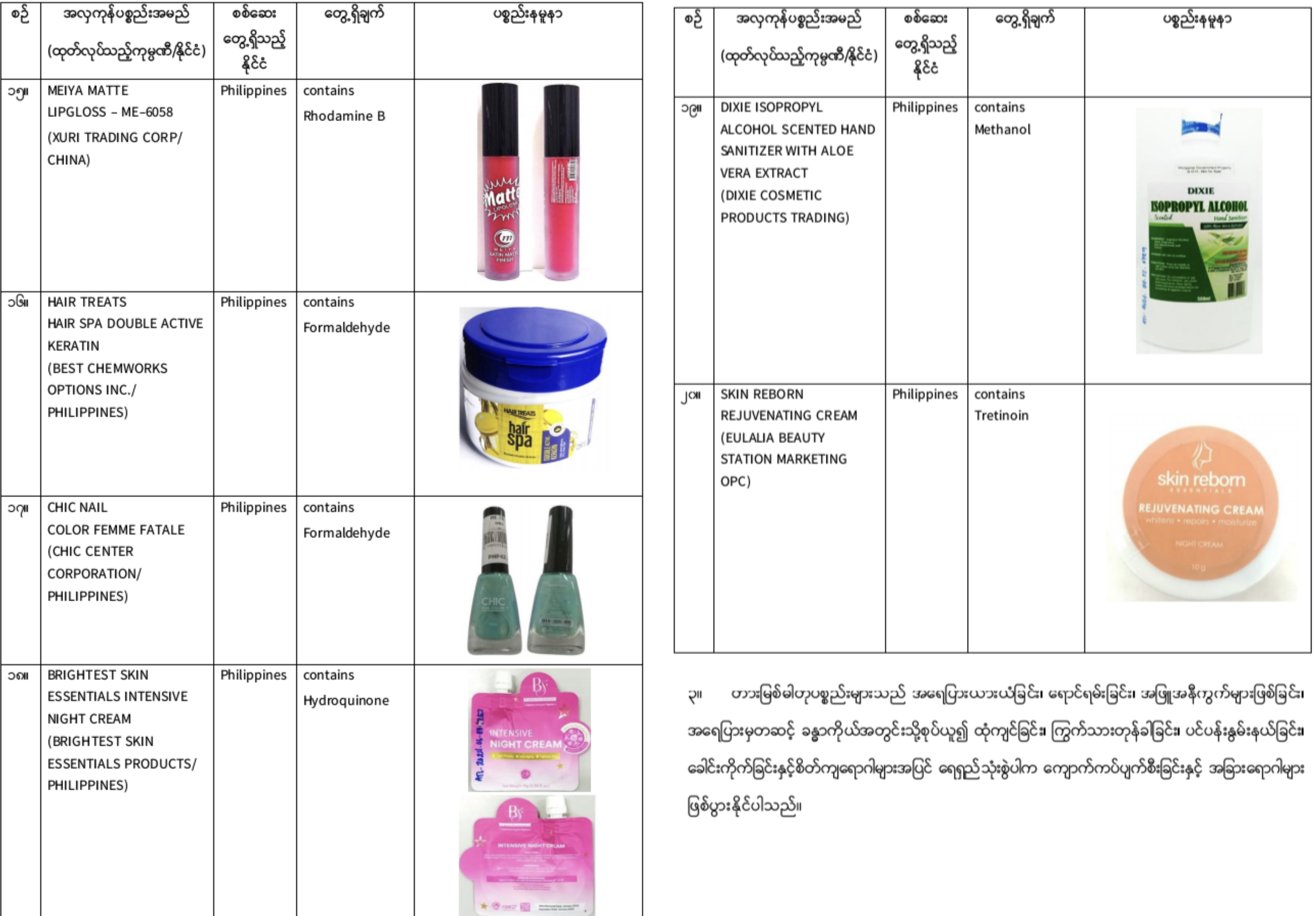 12月5日,缅甸食品与药品管理局(FDA)发布警告,不要使用这20种不合格化妆品和21种不合格食品。