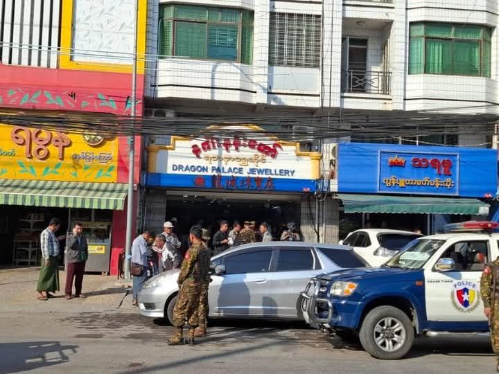 今天(12月26日)早上8点,曼德勒 昌艾达赞镇区77街、31×32街之间的“နဂါးနန်းတော်”金店,遭两名持枪劫匪抢劫,价值6亿多缅币的黄金被抢。