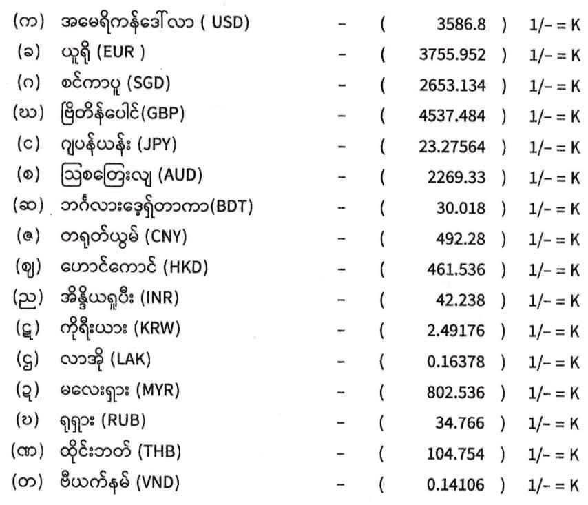 从2025年1月1日起,所有进出口货物的税,将按市场汇率1美元约3,580缅币的标准征收关税。