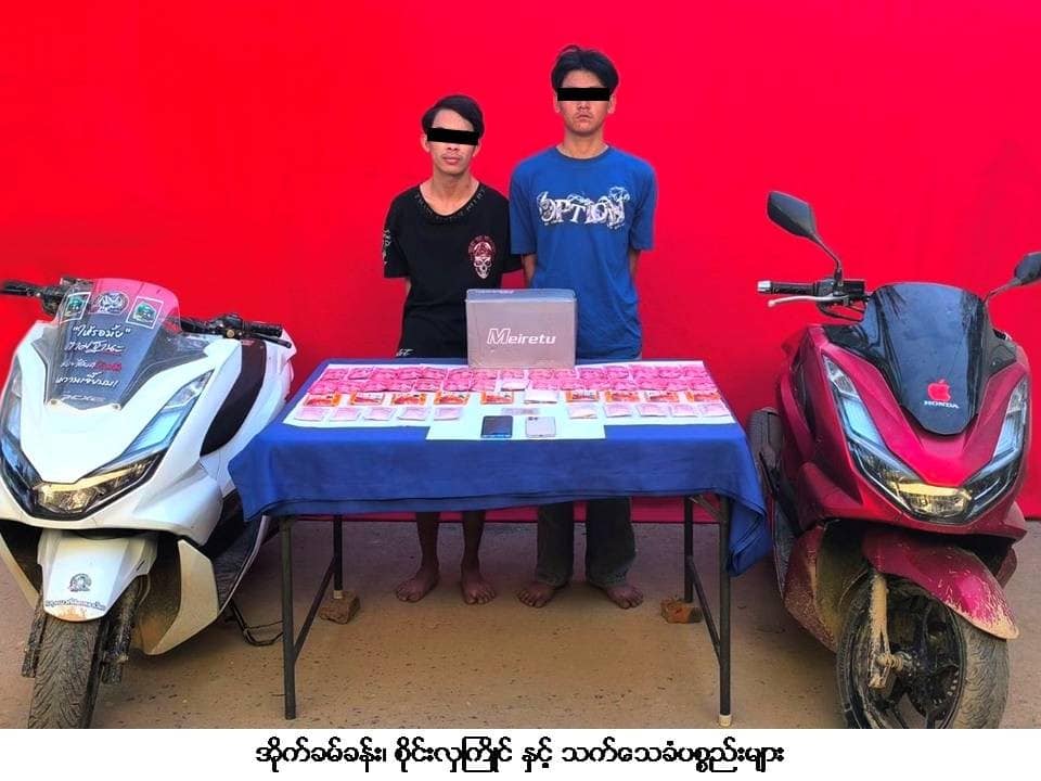 同日下午5点,警方在大其力 梅仰村(မယ်ယန်း)附近截查两辆摩托车,抓获两人,缴获1.3公斤Happy Water(当地市值约1.4亿缅币)。