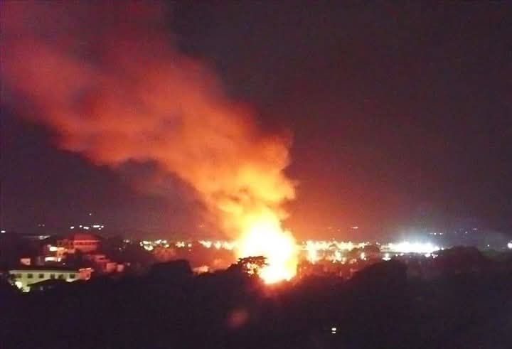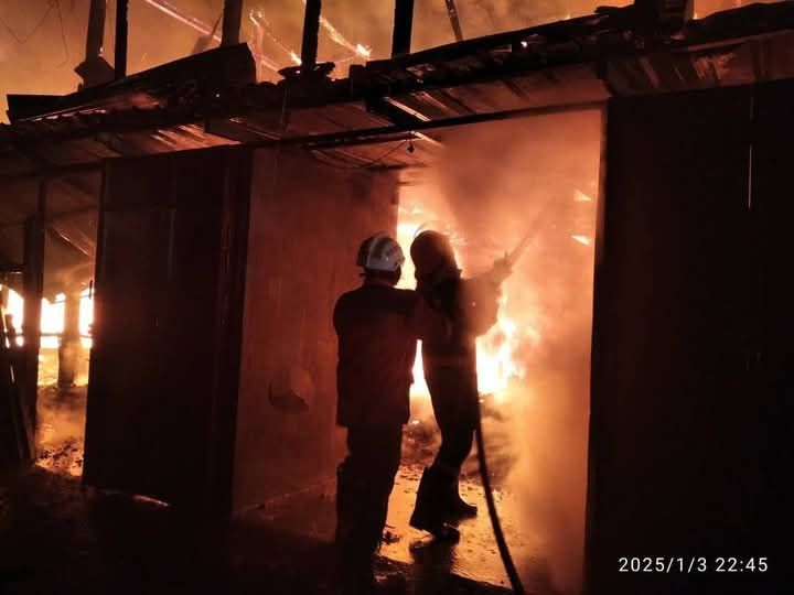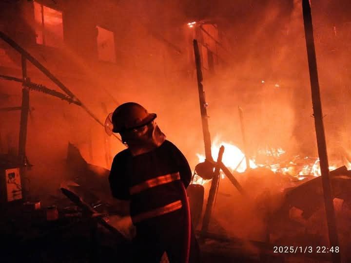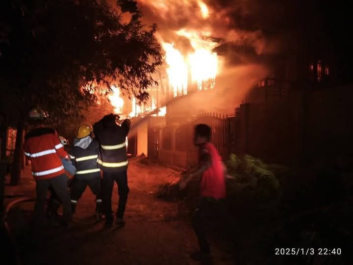 昨天(1月3日)晚上10点左右,实皆省 蒙育瓦市 发生一起重大火灾,导致4所房子被烧毁。火灾是由于配电箱发生电线短路,随后起火,电箱下面的床垫被点燃,火势迅速蔓延到周围的房子。