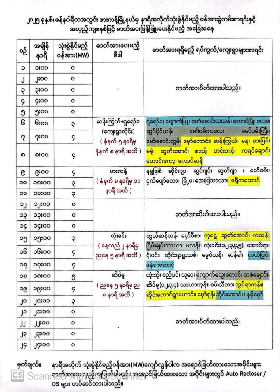 帕敢镇相关部门发布了具体供电安排,从2025年1月5日至1月31日,镇内的各个街区和村庄,每天的供电时间,将按照上述表格进行。