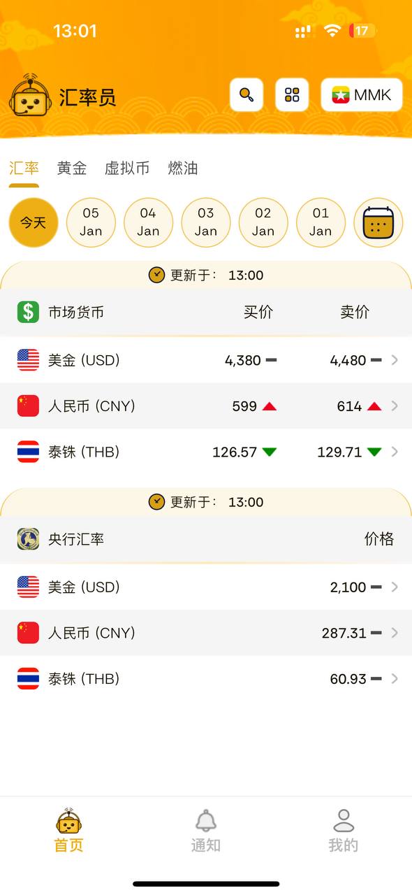 汇率员APP 每天更新缅甸国内汇率 黄金 虚拟币 燃油等价格!