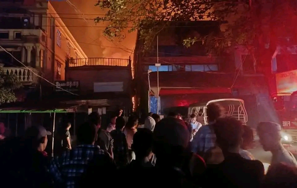 突发!曼德勒玛哈昂梅镇区发生火灾