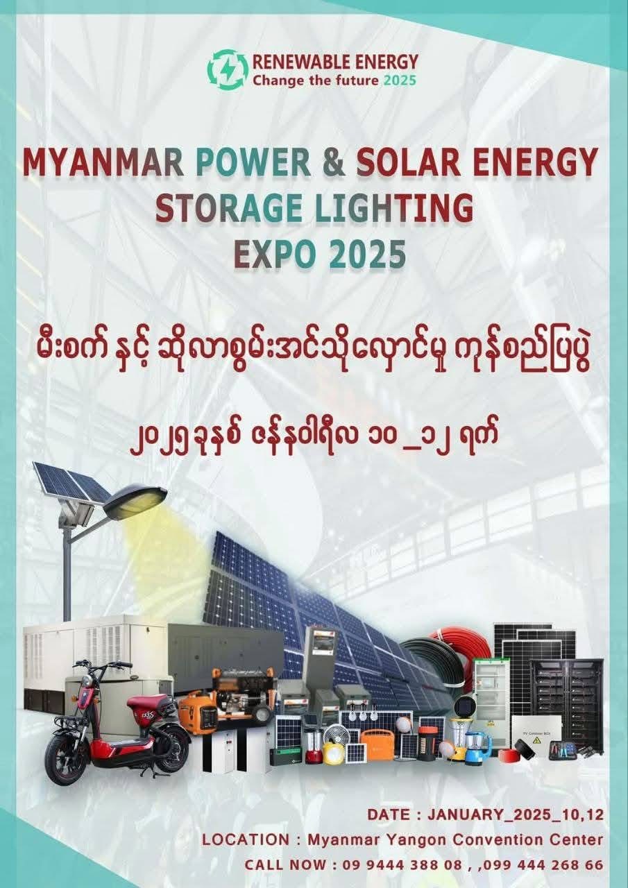 1月10日至12日,每日上午9点至下午5点将举行发电机与太阳能储能产品博览会。此次展会将有来自缅甸和中国的80多家公司参与,设立150个展位。