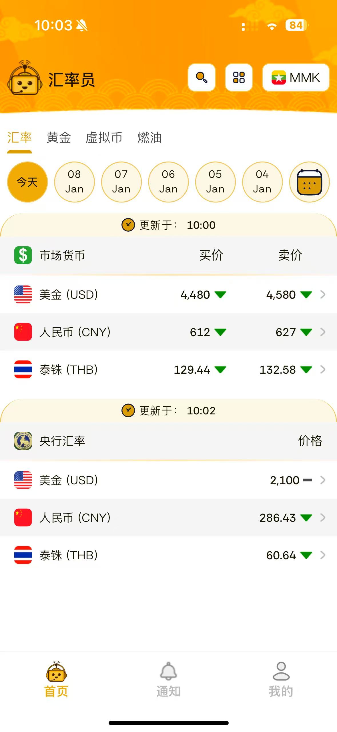 汇率员APP 每天更新缅甸国内汇率 黄金 虚拟币 燃油等价格!