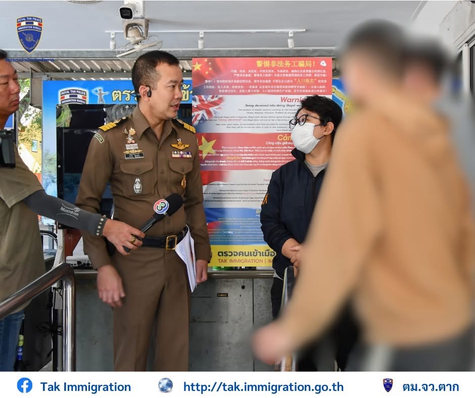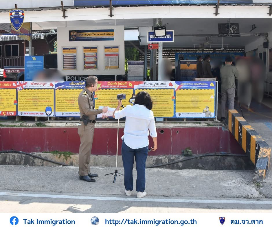 泰国达府移民局在湄索检查站针对外国人,设了多语言警示牌(包括泰语、英语、中文、印尼语、越南语和菲律宾语),提醒警惕缅甸边境非法务工骗局。
