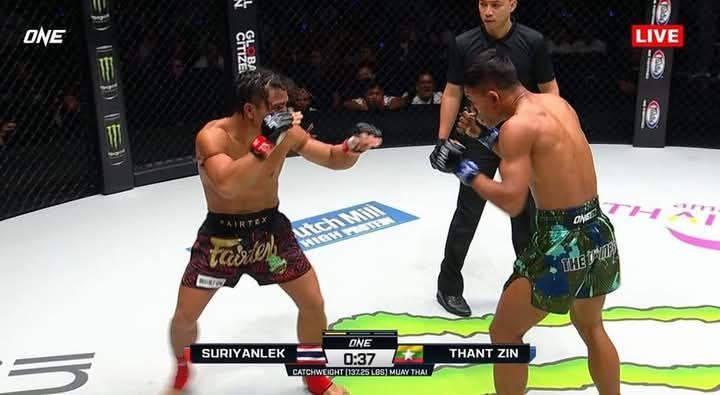 1月24日晚上,在One Championship举办的One - 170比赛中,第二场对决是缅甸拳手坦津(Than Zin)对战泰国拳手苏里安(Suryan Lek)。缅甸拳手坦津在与泰国拳手苏里安对战时,以被裁判叫停的方式输掉了比赛。