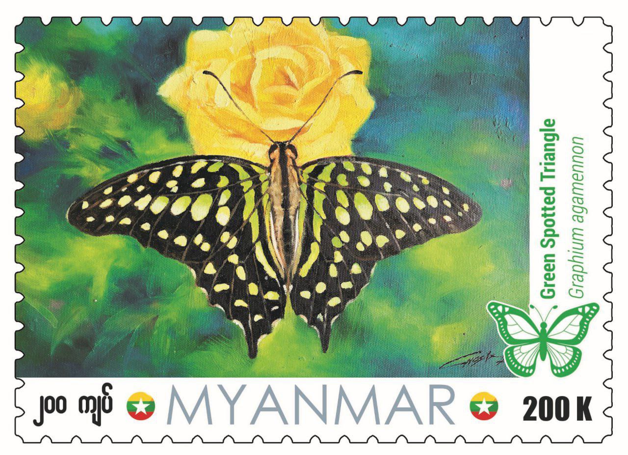 缅甸自然资源与环境保护部发现并记录在册的“Green Spotted Triangle”蝴蝶物种,成为面值200缅币的新邮票设计主题。