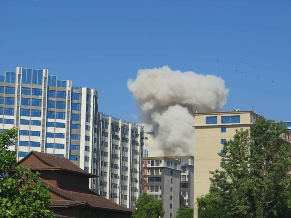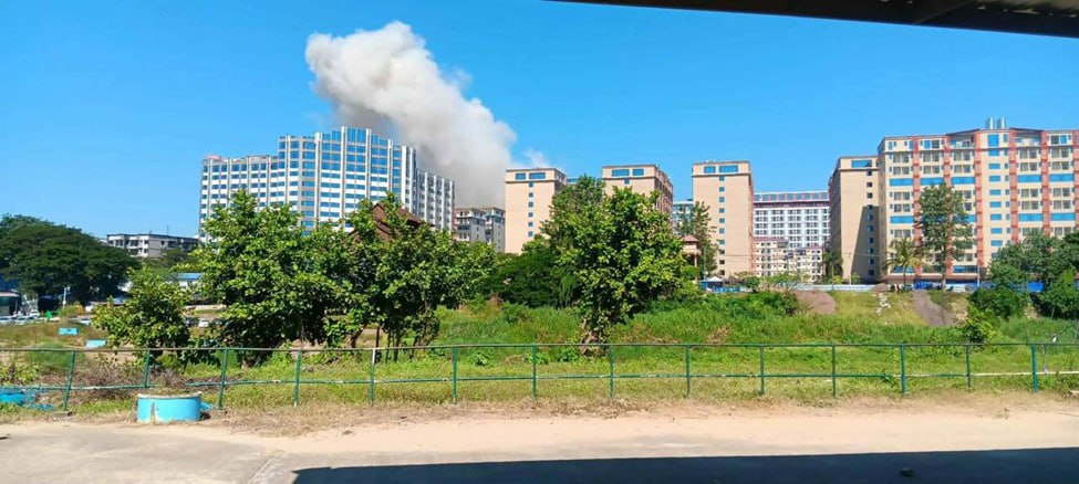 12月3日中午12点半,在克伦邦妙瓦底镇区的水沟谷(ရွှေကုက္ကို)新城,一栋高层楼被用爆破方式拆除。
