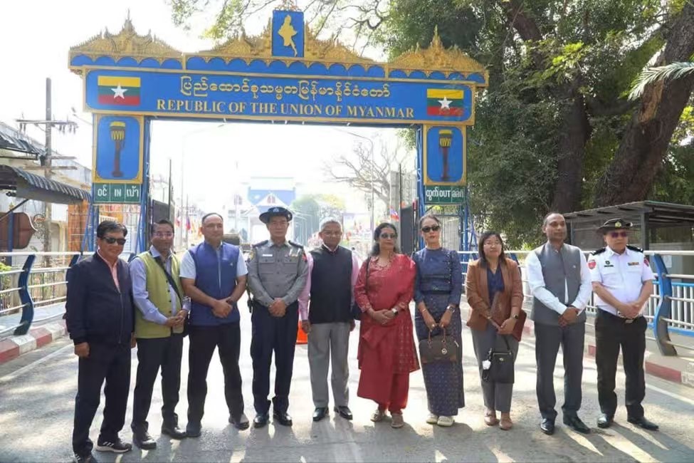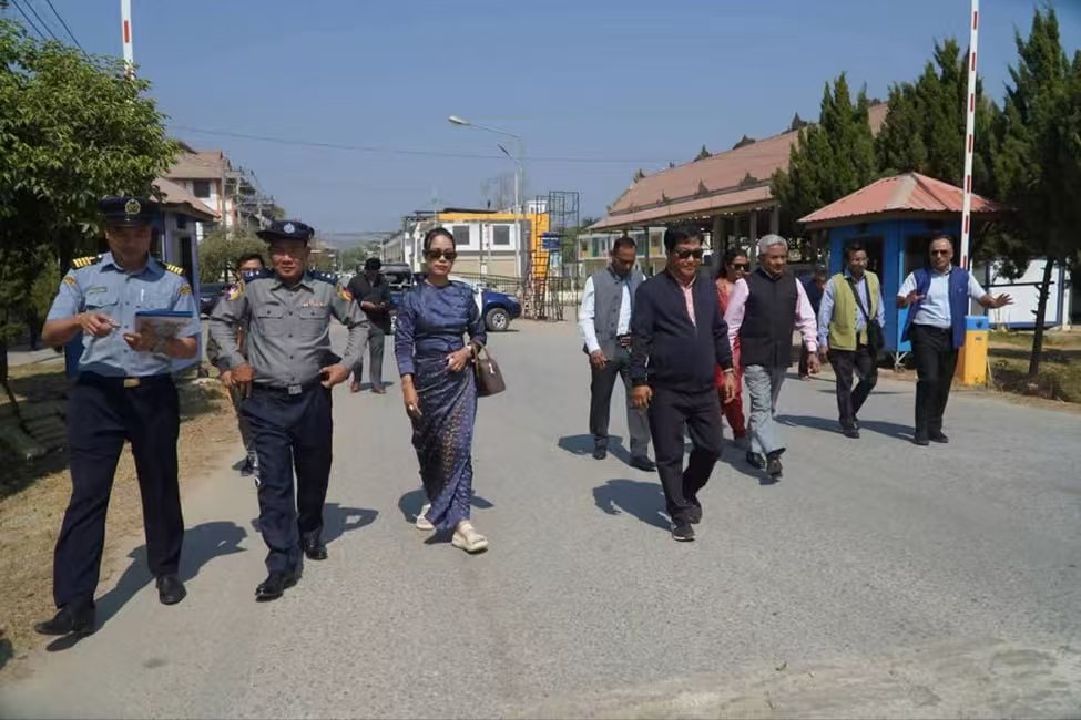 2月1日,印度驻缅甸大使阿布希·塔库尔(Abhay Thakur)前往掸邦大其力市,实地考察缅甸、泰国和老挝边境的贸易发展情况。大使先后走访了大其力市的塔洛市场、金王宫购物中心,并在缅泰1号友谊大桥观察人员跨境往来,在缅泰2号友谊大桥了解货物运输情况。随后,大使在大其力梅杨贸易站会见相关负责人,共同探讨了边境贸易的相关事宜。