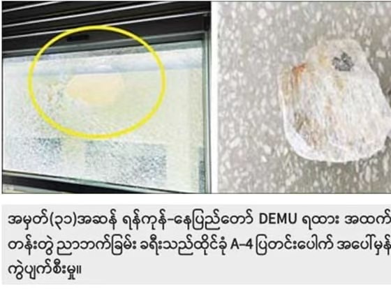仰光城铁线路完成升级后,目前正在使用全新的DEMU电力动车组和RBE车次运行,但近期却接连发生投石袭击事件。1月30日,一辆从永盛(အင်းစိန်)开往罗加(လှော်ကား)的列车在行驶到15英里处时,被一名身份不明的男子投掷石块,导致车窗玻璃破碎。缅甸铁路部门随后立案调查,并在2月1日实地取证时,当场抓获了4名正在再次向列车投石的嫌疑人。经核实,这4名嫌疑人均居住在瑞必达镇区(ရွှေပြည်သာမြို့နယ်),分别是泰林昂(ထိန်လင်းအောင်)、披漂昂(ပြည်ဖြိုးအောင်)、羌咩昂(ချမ်းမြေ့အောင်)和公妙敏(ကောင်းမြတ်မင်း)。