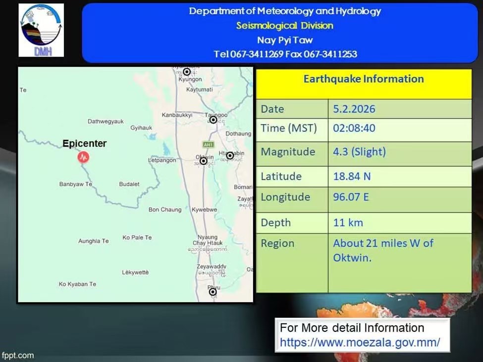 2月4日中午11点左右,克耶邦垒固镇区(Lwi-kaw Township)的梯德玛街区(Htay Tha Ma Ward)因为山火引发了火灾,大火一度威胁到附近的电脑大学和教育学位学院。当地居民表示,火势持续了大约3个小时,万幸的是没有造成建筑物受损。