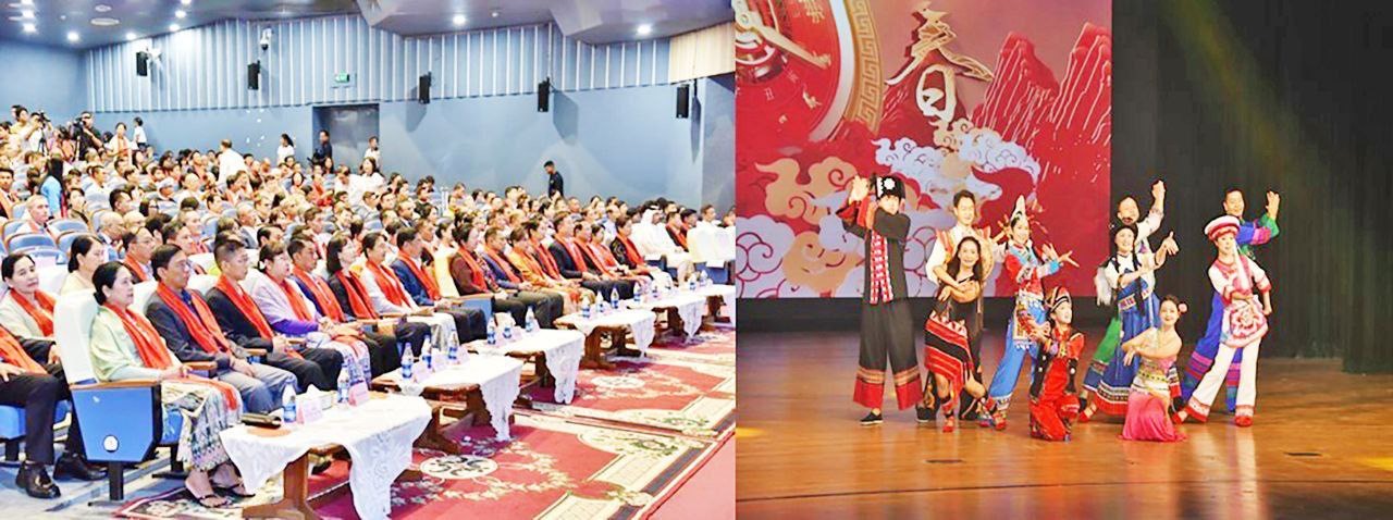 2月5日晚,庆祝中华人民共和国春节的文化文艺演出在仰光国家剧院举行。国家总理吴纽梭(U Nyo Saw)及夫人出席了活动。吴纽梭在现场表示,两国一直坚持和平共处五项原则,在相互尊重和理解的基础上开展各领域紧密合作,这让双方的伙伴关系变得更加深厚,未来还会继续开展互利共赢的合作。