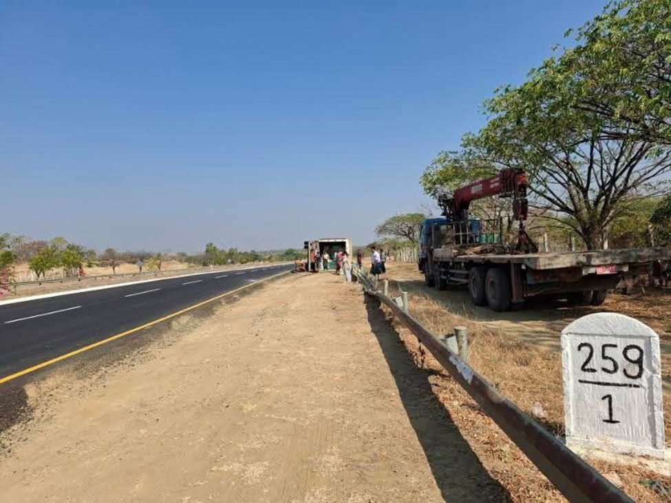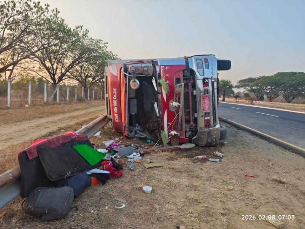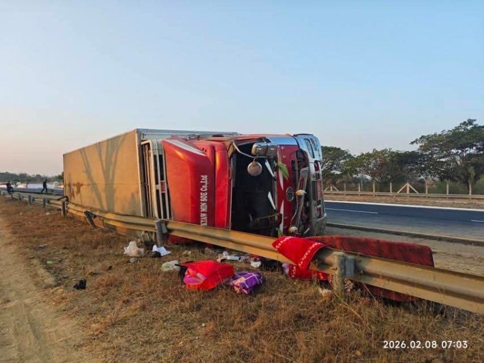 2月8日早上7点左右,一辆从仰光开往曼德勒的货车在高速公路上发生侧翻。当车行驶到259/0至259/1英里路段之间时,因为司机犯困打瞌睡,导致车辆失控撞上了路右侧的护栏。事故造成10节护栏损坏,好在司机和跟车员都没有受伤。