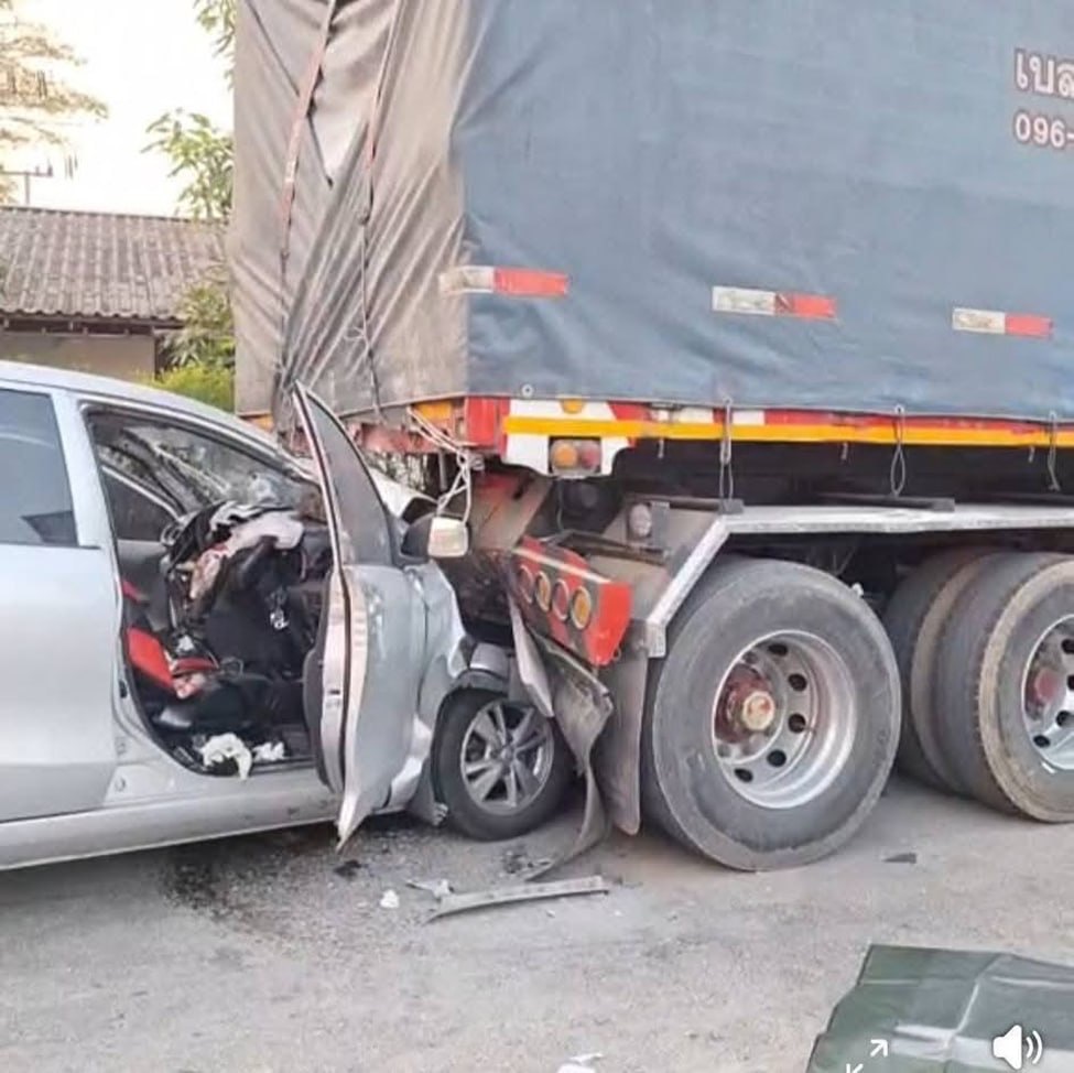 泰缅边境湄索的高速公路早上5点半左右,发生了一起交通事故。一辆由缅甸籍男子驾驶的私家车,撞上了停在路边的货车拖车尾部。事发地点在海耶纳瓦多卡尧(ဟိုင်းယက်နားဝပ်ဒေါကရောက်)寺庙附近。由于撞击非常猛烈,私家车的整个车头全被撞毁。缅甸籍男司机和车上一名缅甸女乘客伤势太重,两人当场身亡。坐在副驾驶的是一名泰国籍乘客亦受重伤。据当地居民表示,这名泰国乘客截至当日下午2点都还没有苏醒。