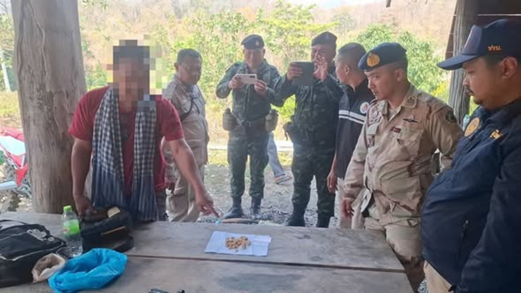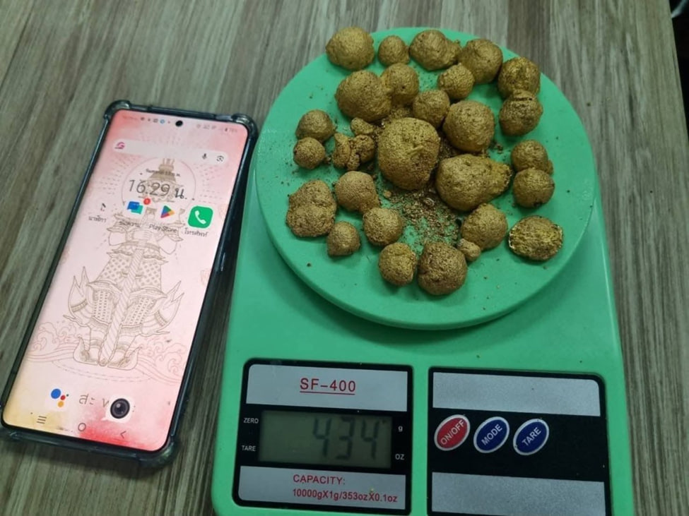 据泰媒报道,2月13日,泰国执法部门在北碧府边境破获一起黄金走私案。一名叫“布爱戴蒙(ဘွိင်းဒိုင်းမွန်)”的缅甸男子,试图携带25块、总重434克的金块,通过普南荣(ဖူးနမ့်ရွန်)附近的森林小道非法入境泰国时被当场抓获。据悉,这批黄金全部产自缅甸的德林达依江。
