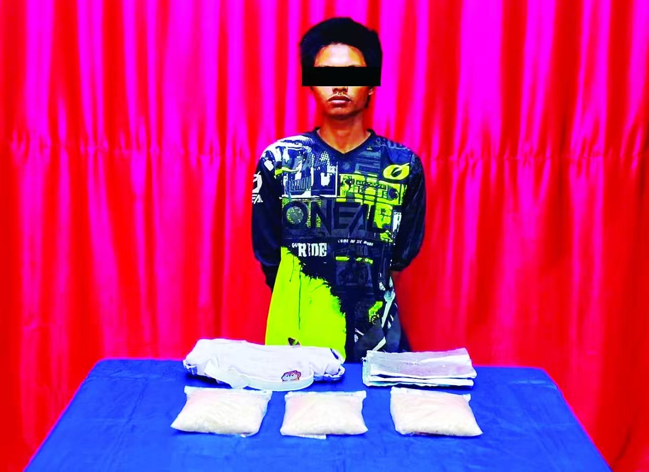 2月11日下午5点半,缉毒警队在大其力(Tachileik)三塞(B)街区(San Sai B)万迈(Wan Mai)路进行拦截检查时,从一名路过的31岁男子觉散乌(Kyaw San Oo,绰号 Kalar)身上查获了3公斤冰毒,预估市值达2.4亿缅币。随后,当天下午6点,警方又在湄公(Me Kong)街区家政学校路(Eain Twin Mu Kyaung Road)抓获了另一名40岁的嫌疑人温觉刷(Win Kyaw Swar,绰号 Tun)。警方当场查获0.1公斤冰毒(市值80万缅币)和500片麻黄素/疯药(市值35万缅币)。目前,这两名嫌疑人均已被当地警方依据《毒品与精神药物法》立案追责。