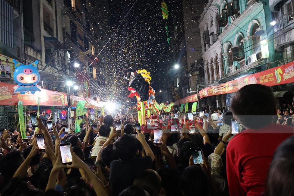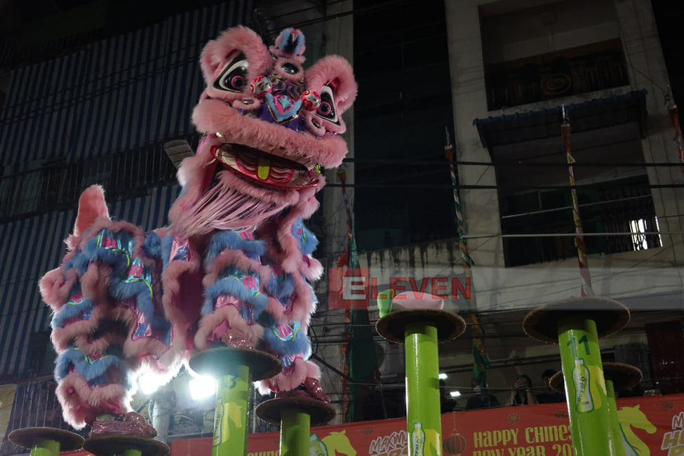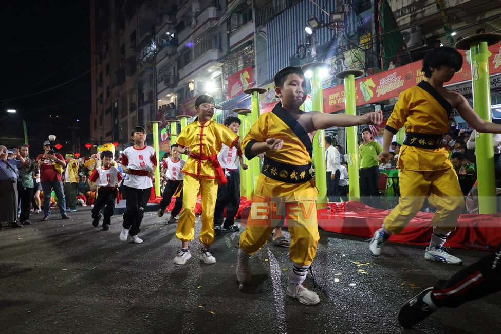 2月18号晚上,第16届龙狮比赛在拉达镇区的辛乌丹路(စဉ့်အိုးတန်းလမ်း)正式拉开帷幕。这次比赛由缅甸中华传统龙狮总会主办,活动会一直持续到2月20号
