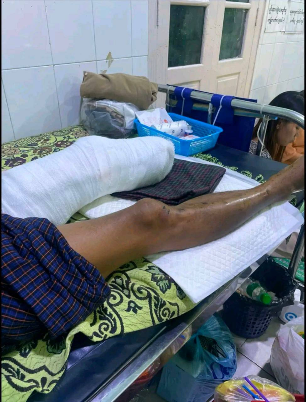 2月15日下午5点半左右,曼德勒省抹谷镇区发生一起地雷伤人事件。1名男子在迪盛贡村(သစ်ဆိမ့်ကုန်းရွာ)的院子里捡东西时不幸踩中地雷。他的一条腿被当场炸断。受伤男子名叫哥艾赛(ကိုအိုက်စိုင်း),今年44岁。他是抹谷镇西部迪盛贡村(သစ်ဆိမ့်ကုန်းရွာ)的村民。这名男子目前正在曼德勒人民医院接受救治。为了能继续看病,他现在急需大家伸出援手。
