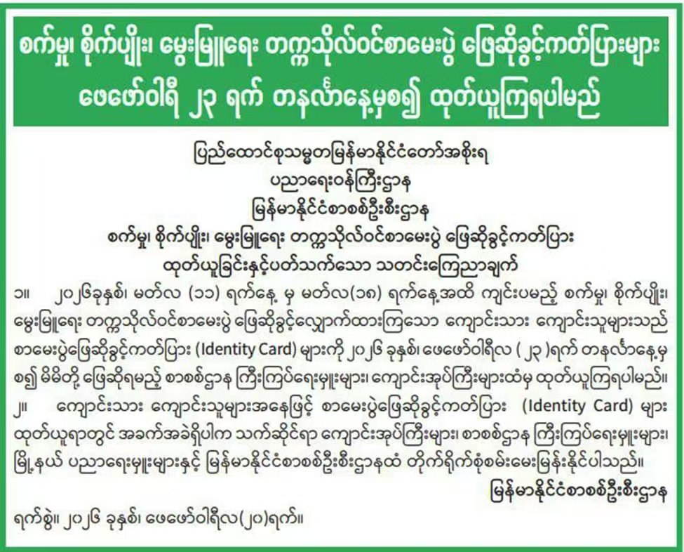 缅甸工农畜牧业大学入学考试准考证2月23日起发放