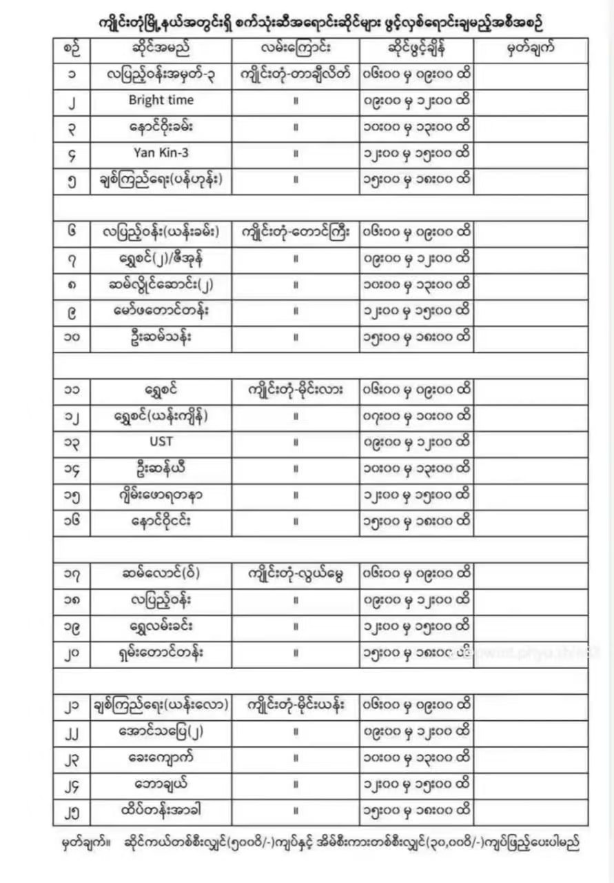 掸邦东部景栋镇区限制了汽油和柴油的销售时间。现在摩托车单次只能加5000缅币的油,私家车单次最多加30000缅币,按照规定镇区内每家加油站每天只能营业3小时。当地燃油交易协会也下达了同样的通知,同一时段大概只允许5家加油站开门营业。这次限购主要是因为泰国停止了燃油出口,景栋镇区只好采取这种轮流限购的措施。虽然实行了限量供应,但目前油价依然维持在3000缅币左右。