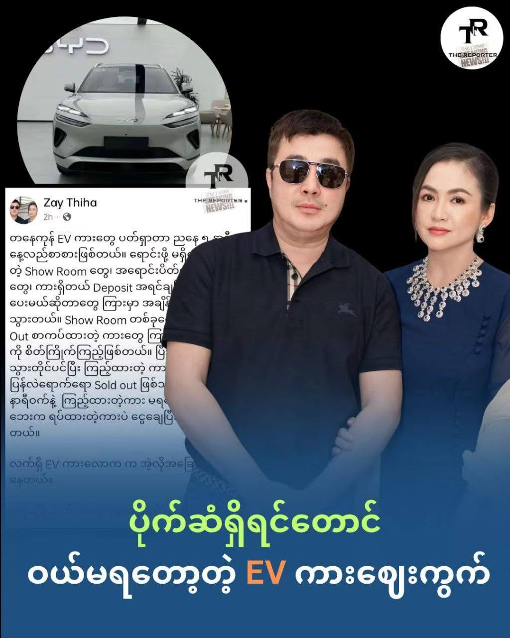 目前缅甸电动车市场需求爆棚,各大展厅的车都被秒抢。演员南达莱(နန္ဒာလှိုင်)的丈夫泽迪哈(ဇေသီဟ)最近想买一辆电动车,他跑了好多家展厅发现全都卖光了,买车的人多到连交定金都来不及。现在大家都在抢购电动车,但是现车数量实在太少,想买的人根本买不到。