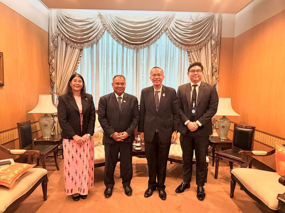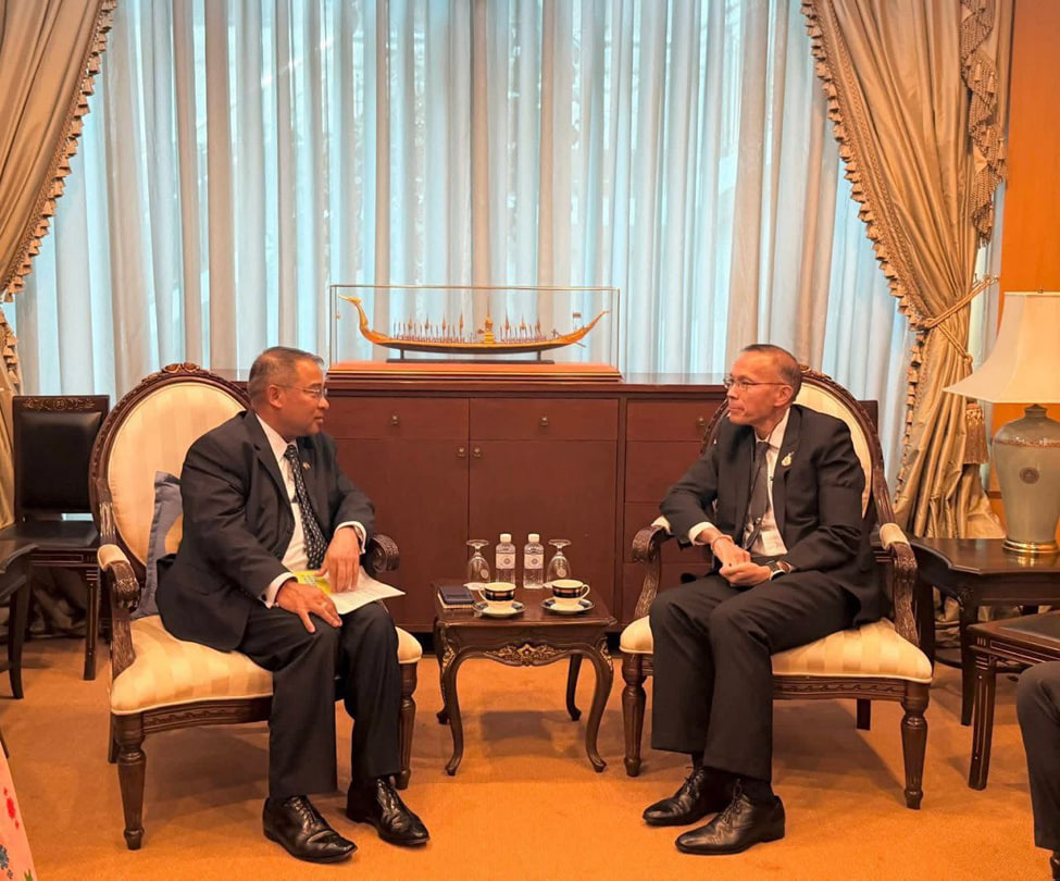 正文:3月9日下午,缅甸驻泰国大使吴佐佐梭与泰国外长顾问卡拉亚纳·维帕提普米普拉特斯(Kallayana Vipattipumiprates)举行会面。吴佐佐梭祝贺对方就任新职,并表示会密切配合提升双边合作。随后,双方重点讨论了如何维护边境安全稳定,以及推动边境贸易恢复正常。此外,两人还探讨了扩大经济合作的市场机会,并交流了在泰国的缅甸劳工相关事宜。