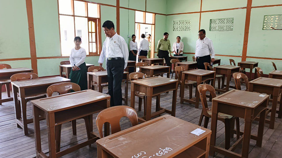正文:2026年缅甸全国高考将在3月11日正式开考。曼德勒省玛哈昂梅镇区一共设立了5个考点。3月9日上午,曼德勒省首席部长吴苗昂前往这些考点视察。他重点检查了考场周边的安保工作。同时仔细查看了考场的采光和通风情况。他还巡查了校园内外的卫生环境,确保所有考生都能顺利参加考试。