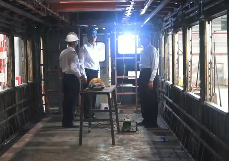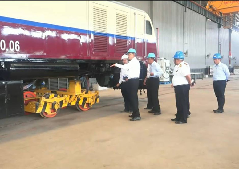 缅甸交通与通讯部公布了一项列车制造进展。内比都新机车装配厂正在制造电池电力动车组。交通与通讯部部长吴妙吞吴专门去现场视察了生产进度。这批正在组装的新型列车未来会投入仰光环线运行。同时也会安排在一些短距离路线上使用。部长在现场对生产工作提出了明确要求。工厂必须严格把关这批动车组的质量。并且要全力以赴确保在规定时间内按期完工。