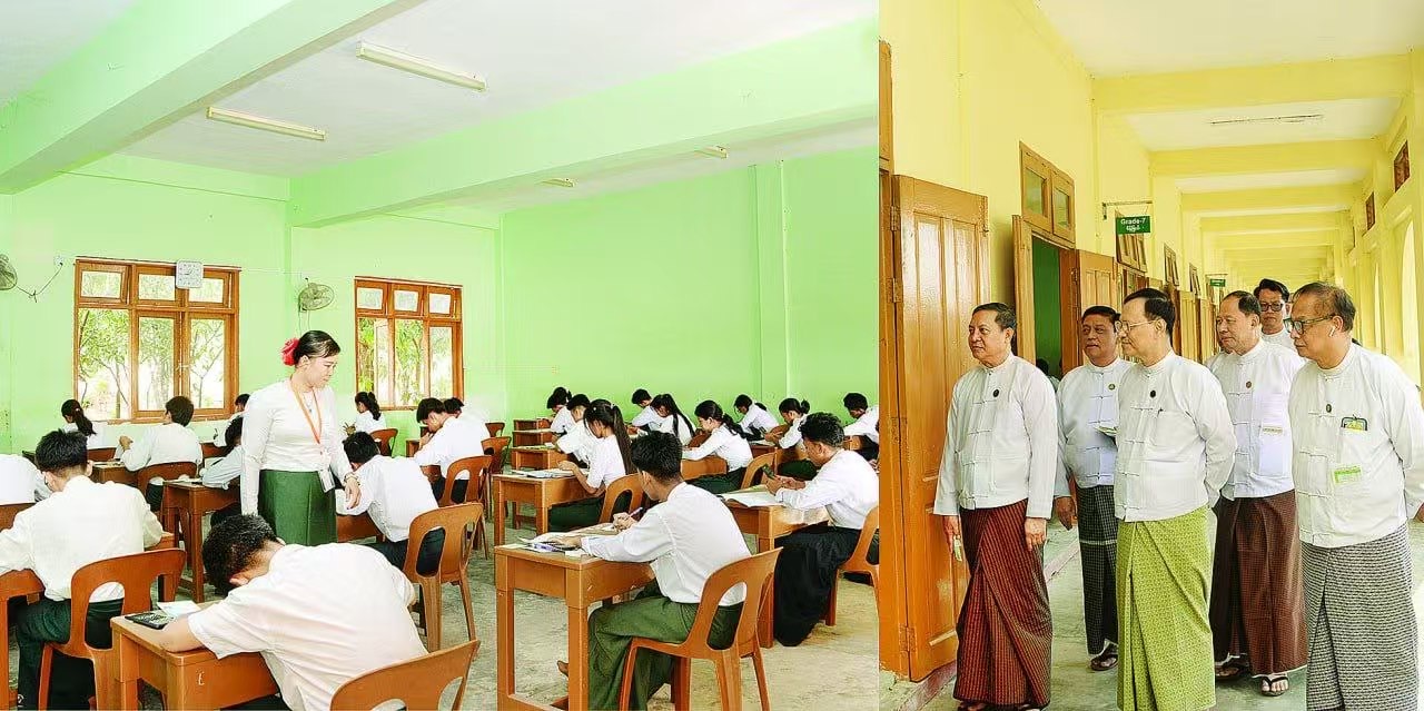 3月13日上午,教育部副部长佐敏博士(Dr. Zaw Myint)前往内比都布巴迪里镇区(Pobbathiri Township)第3、第13基础教育高级中学等考点,实地察看2026年大学入学考试(高考)第三天数学科目的考试情况。副部长要求确保考场通风采光良好,并敦促相关负责人严格遵守考试规则,确保考生能平安顺利完成全部科目。今年内比都共设52个考点,共有14914名普通考生和230名职教考生报名参考,其中参加当天数学考试的普通考生人数为14103人。
