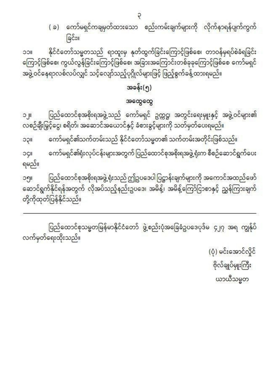 缅甸国防与安全委员会在3月14日发布通告。缅甸正式颁布了《空间科技发展委员会法》。新法律的主要目的是推动空间科技发展。缅甸计划在航天领域进一步加强国际合作。相关技术将被用来促进社会经济发展和维护和平。按照法律规定,缅甸总统有权组建这个委员会。委员会成员至少要有5人。缅甸总统将亲自指定委员会的主席和秘书长。