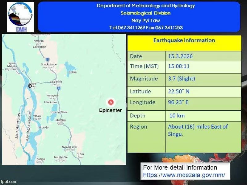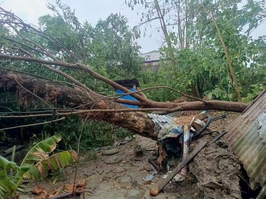 于3月15日下午3点半左右,仰光省宋割镇区突降暴雨并刮起大风。岱杜甘村(သိုက်တူးကန် ကျေးရွာ)受灾严重,村里有部分房屋发生倒塌,不少房屋的屋顶被狂风掀翻,还有许多树木被大风刮倒。宋割镇消防站队员迅速赶往现场,他们随后开展了道路清理等救援工作。
