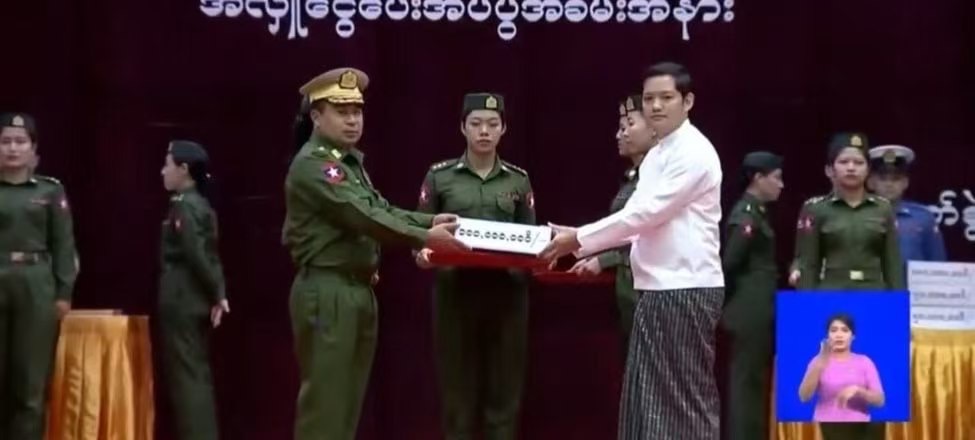 3月27日是缅甸第81届建军节,为了迎接建军节,社会各界爱心人士积极捐款。3月20日下午,捐赠活动在内比都举行,民众捐出的金额超过了45亿缅币,建军节指导委员会主席兼军队训练总长毕松林(ပြည့်စုံလင်း)少将、内比都军区司令吉泰(ကြည်သိုက်)少将、阅兵工作组主席兼副训练总长散育乃(စန်းယုနိုင်)少将,以及阅兵总指挥敏敏梭(မင်းမင်းစိုး)少将共同接收了这笔捐款,并向民众回赠了荣誉证书。