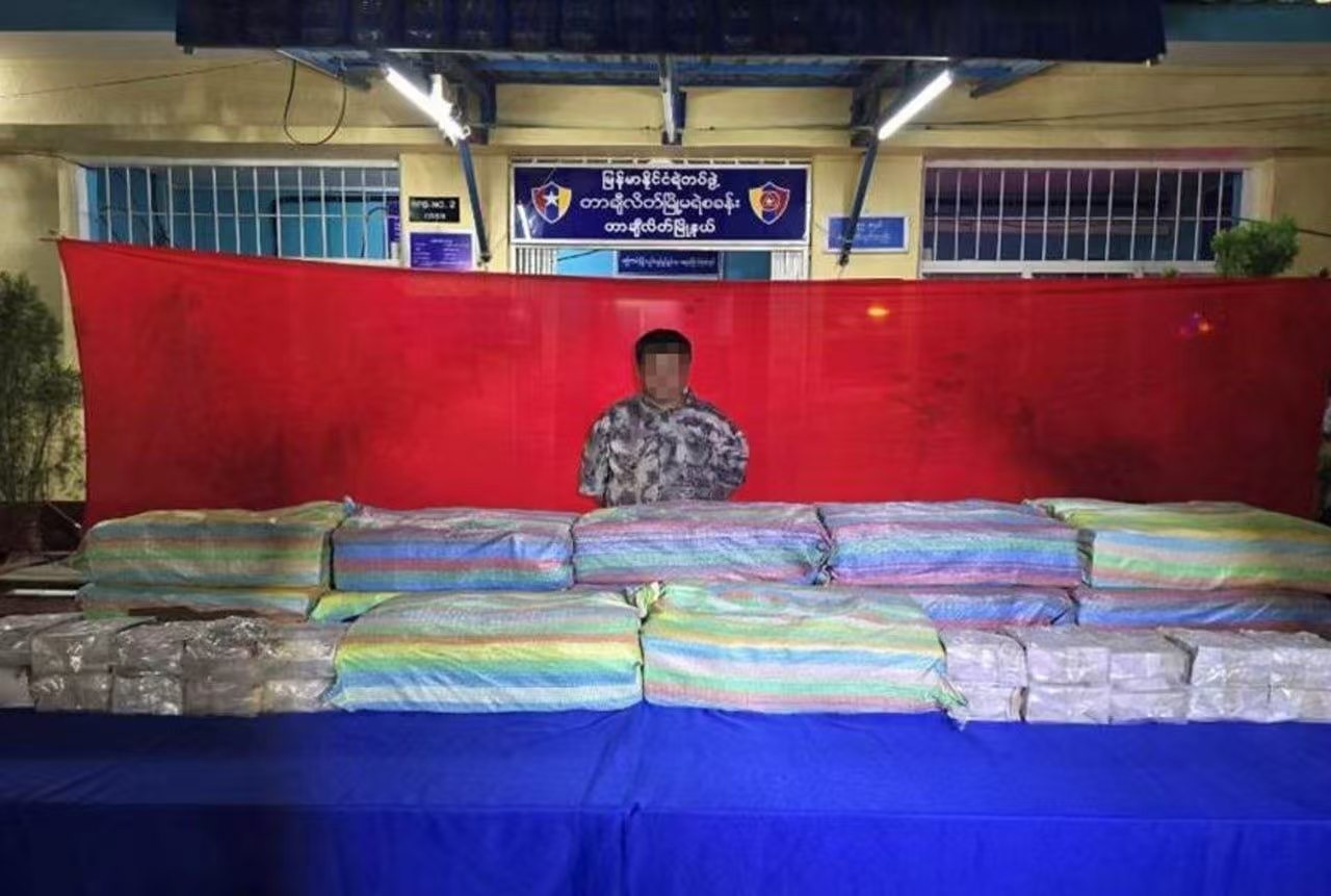 3月22日凌晨2点35分左右,安全部队接到线报,有人在掸邦东部大其力市蓬吞街区(ပုန်းထွန်းရပ်ကွက်)走私毒品,事发地点在美塞河边的一个挡土墙工地。当时一伙可疑人员正用绳子把黑色包裹吊过挡土墙,他们打算把包裹运过美塞河走私到泰国。执法人员立刻赶去现场搜查,当场抓获嫌疑人赛貌万(စိုင်းမောင်ဝမ်း),外号叫万万(ဝမ်းဝမ်း),现场一共查获13个大包。里面装的都是层层包装好的冰毒,这批冰毒总重量约260公斤,总价值高达20.8亿缅币。目前嫌疑人和毒品已经交给了当地警察局,警方正式立案调查,正在全力追捕其他同伙。