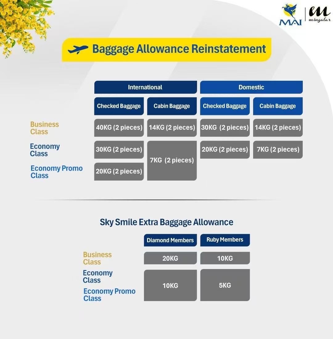 缅甸国际航空发出通知,从3月26日起全面恢复国际航班的原有行李托运额度,之前停飞的所有国内航班也将恢复正常运营。在行李托运方面,国际航班经济舱旅客最多可托运30公斤,商务舱旅客最多可托运40公斤。Sky Smile红宝石和钻石卡会员也能重新享受原有的额外托运福利,为了弥补旅客损失,针对在3月22日到3月25日期间受临时限额影响的乘客,航空公司将补偿一张价值等同于10公斤行李额的旅行代金券。这张代金券的使用期限到6月30日,民众可以通过官方指定的链接填写表单领取,代金券不支持转让和退款。针对此前因运营问题导致国内航班暂时停飞的情况,航空公司向旅客表达了歉意,并承诺会尽全力保障大家顺畅出行。