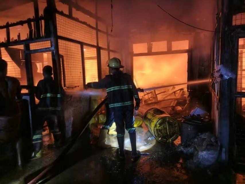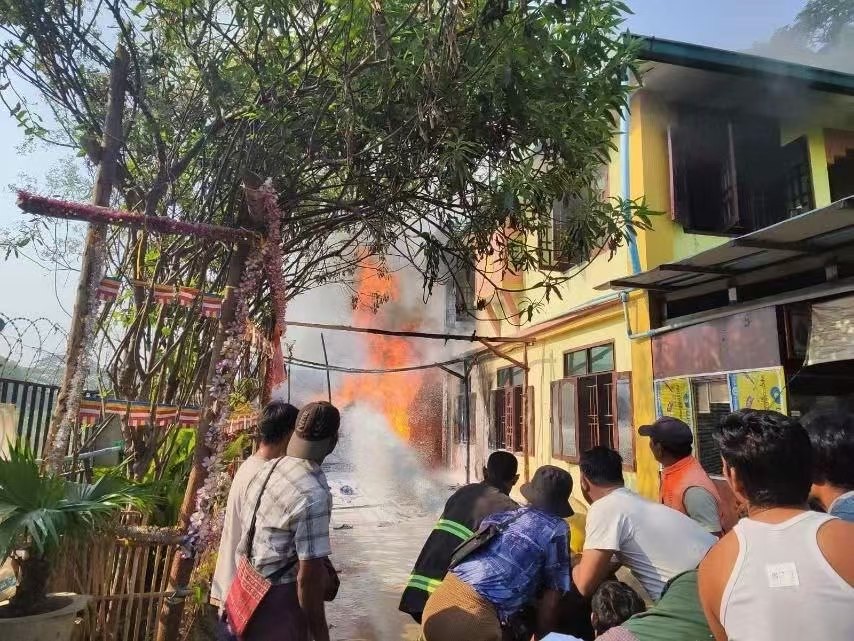 今天3月26日凌晨4点57分左右,曼德勒省密铁拉镇发生火灾,起火地点在工业区2号路的一栋建筑内。密铁拉镇区消防站的队员立刻赶往现场救援,同时1号辖区、2号辖区、工业区和市场等多个辅助消防站的人员也加入了灭火行动。经过多方合力扑救,大火最终在凌晨5点31分被彻底扑灭,整个救援过程持续了半个多小时。