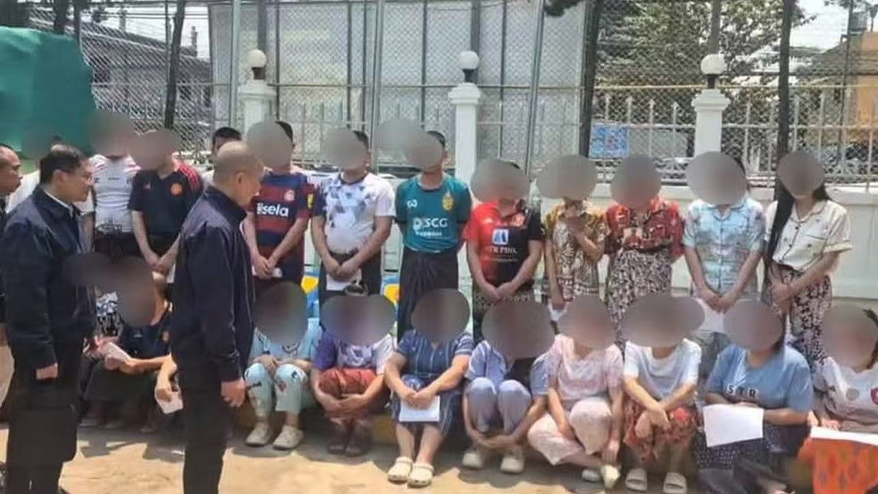3月24日上午9点,泰方人员来到掸邦东部大其力,他们对24名涉嫌非法网赌的泰国人进行了审讯,这批嫌疑人是在2月7日落网的,警方在大其力玛卡霍坎街区(မကာဟိုခမ်းရပ်ကွက်)实施了抓捕,地点在杰德贡汽车旅馆(ကြယ်တံခွန်မိုတယ်)。现场查获了一批网赌设备,大其力紧挨着泰国美塞,泰国媒体Maesaipress昨天发文指出,大其力正逐渐变成电诈团伙转移的新据点。
