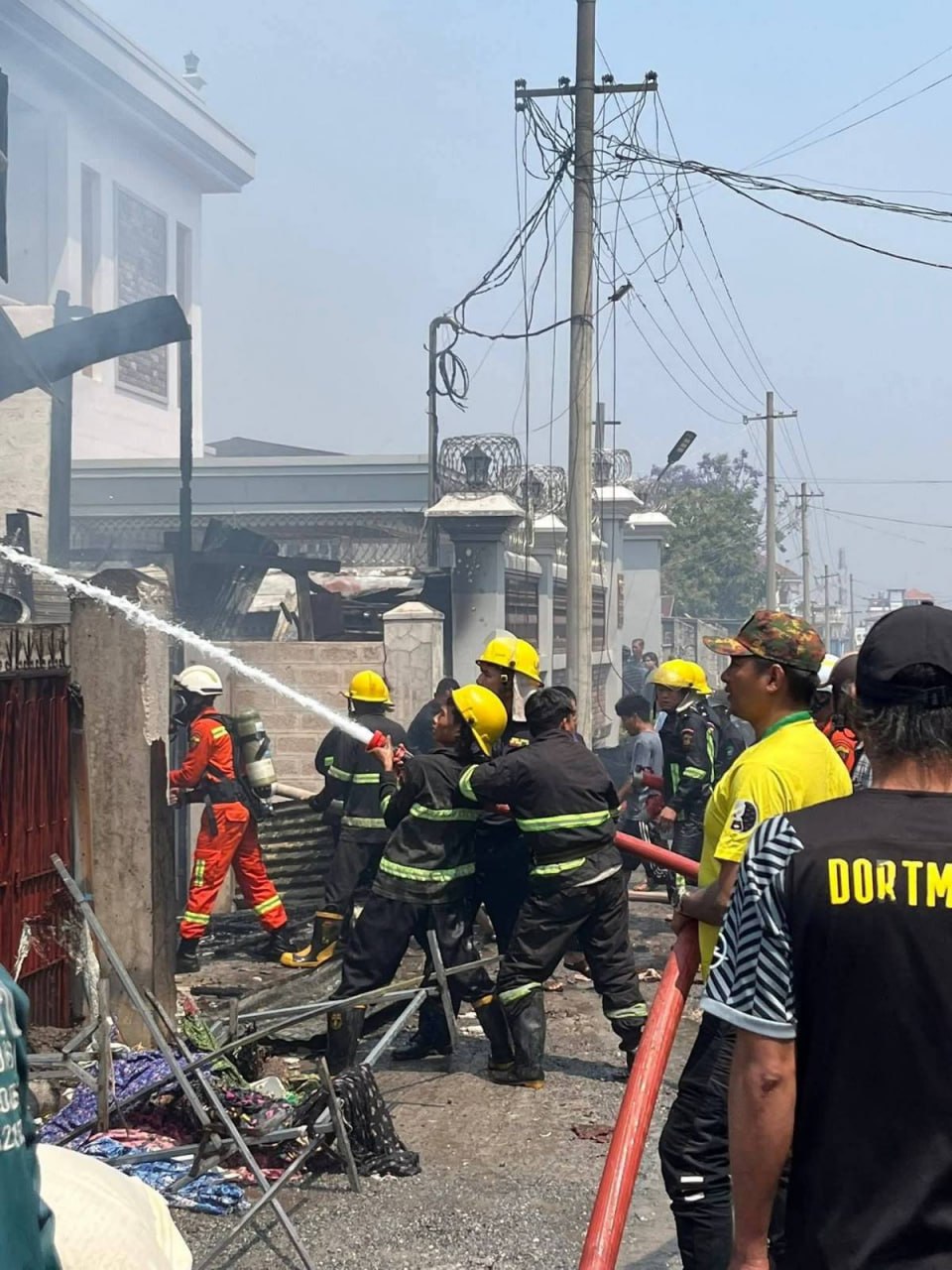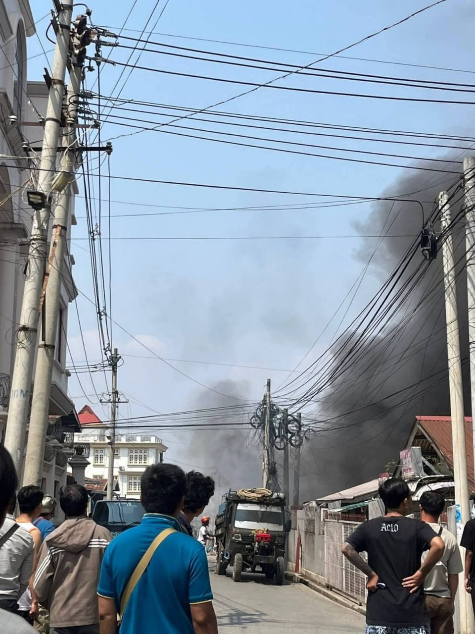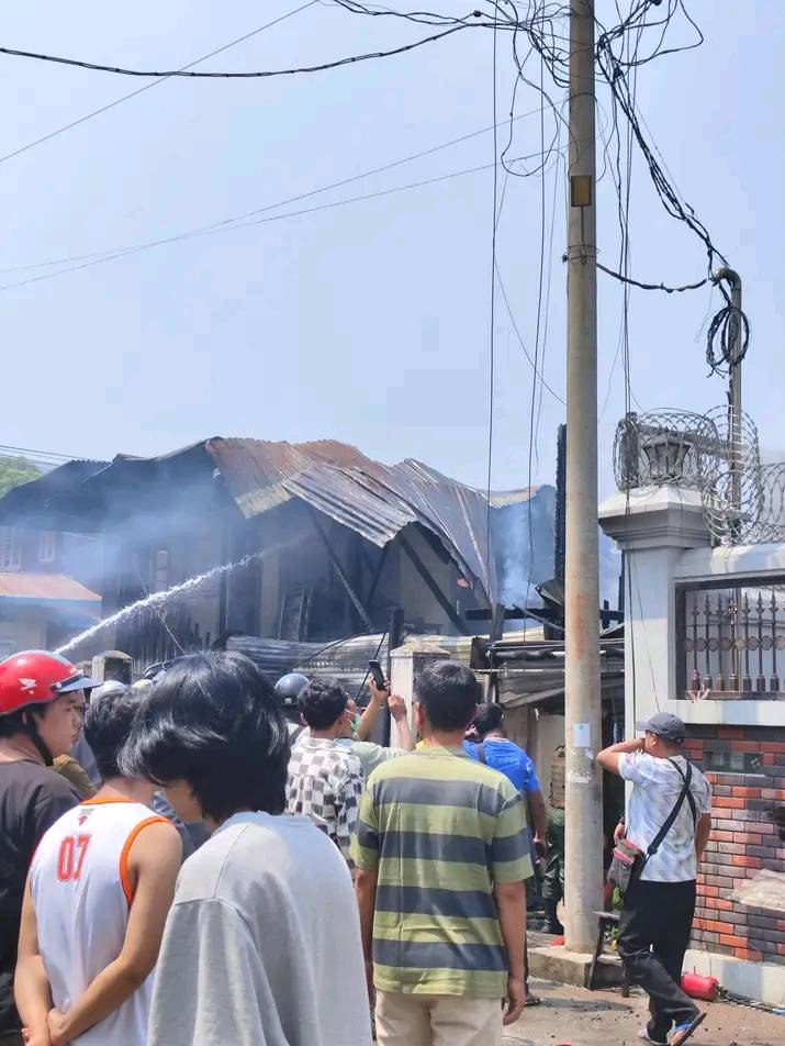3月27日上午10点半左右,掸邦南部东枝市发生火灾。起火点在庇都达街区(ပြည်တော်သာရပ်ကွက်)。具体位置在宁西路(နှင်းဆီလမ်း)和贡突路(ဂုဏ်ထူးလမ်း)路口的加油站旁边。大火从一家修理厂烧起,随后蔓延到了旁边的裁缝铺。当地老百姓和消防员赶紧一起灭火。火势在10点50分左右被成功控制。附近居民说,起火时旁边刚好有很多排队买油的人。大家看到起火后赶紧四散逃命。这场火灾没有造成人员伤亡。目前确认有2家店铺被烧毁。具体的损失情况还在统计中。