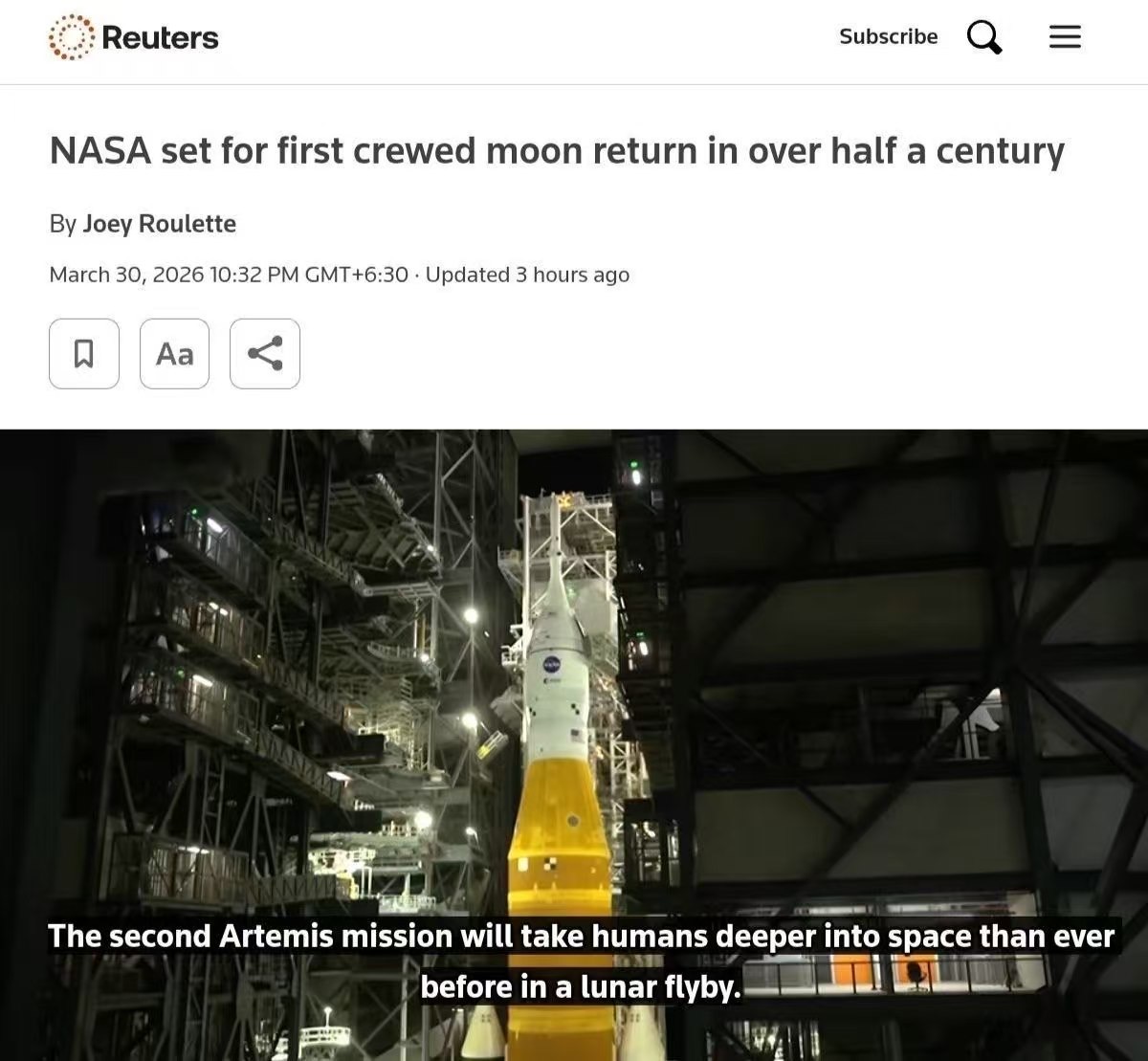 美国正面临中国在太空领域的激烈竞争,为了重新夺回主导权,NASA正准备执行阿耳忒弥斯计划的第二次任务,这也是53年来人类宇航员首次重返月球。这次任务对人类的登月梦想来说是一次重要的试飞,整个测试过程将持续10天,宇航员将绕月飞行后返回地球,他们会进入人类有史以来到达过的最深太空。目前美国官员把目光紧盯技术对手中国,中国的探月工程已经成功发射了多艘无人探测器。他们正稳步推进计划,目标是在2030年实现载人登月。