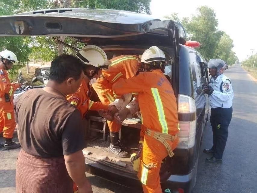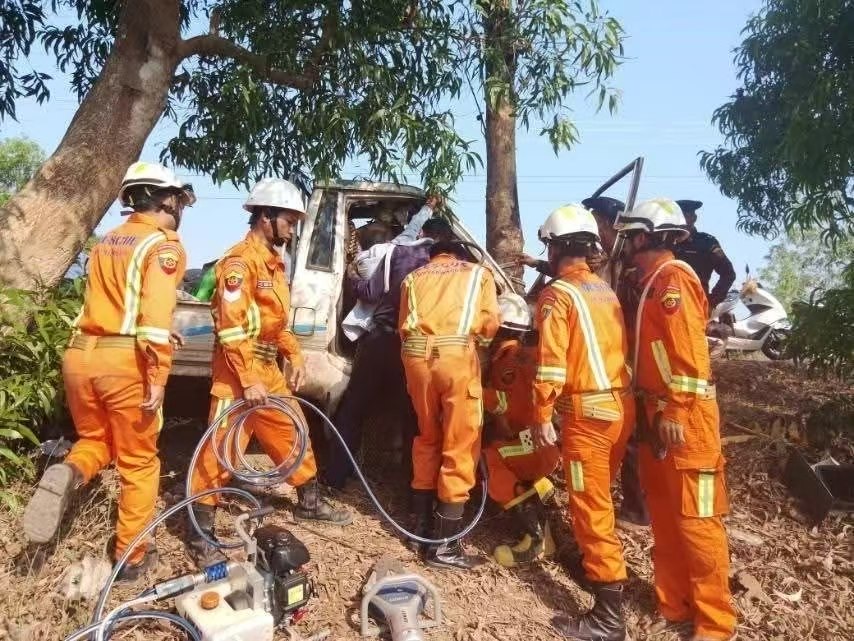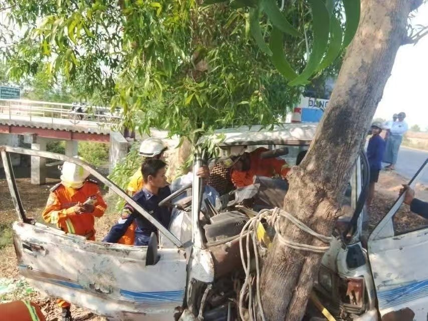 2026年3月30日下午3点半左右,腊布达镇区发生了一起车禍。一辆白色的丰田客货车从贾甘村(ကြာကန်ကျေးရွာ)开往腊布达,车子行驶到腊布达至苗妙公路的第2和第3英里柱之间时,不慎撞上了路边的柚木树,撞击导致一人被困车内。腊布达县消防局接到求助后立刻出动,助理局长吴觉妙敏带队前往现场,救援队伍包括15名专职消防员和10名志愿消防员。他们开着1辆消防车和1辆救护车展开救援。下午4点左右救援工作顺利结束,56岁的司机吴昂都左脚受伤,好在没有生命危险。纳龙达(နှလုံးသား)社会援助组织派出了救护车,将他送往腊布达镇区3英里200床位公立医院接受治疗。