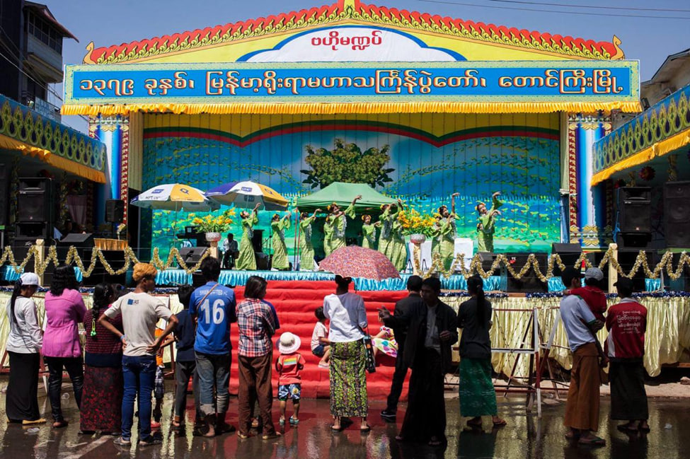 迎接4月缅甸传统泼水节,东枝市区各部门将搭建9个娱乐舞台。舞台分布在掸邦议会附近、邦公路局前、昂山将军公园路口、城市广场(City Square)前、贡代路(ကုန်သည်လမ်း)路口、缪玛市场摩托车停放处、华人神庙前、邦农业局前以及东部军区司令部前。此外还会设立2处步行泼水节地点。它们都位于中央舞台两侧的昂山将军路上。一处是从德别路(သပြေလမ်း)邮局路口延伸到警察住宅区前。另一处是从城市广场前一直到茉莉花酒店(Jasmine Hotel)前。