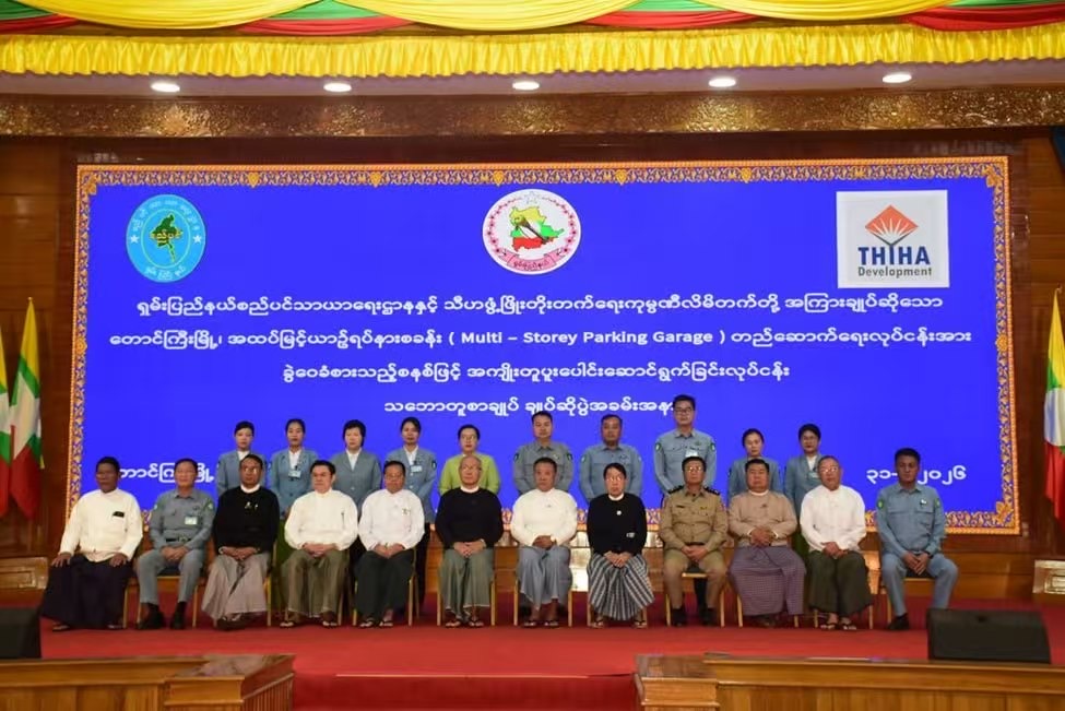 3月31日上午,掸邦政府和蒂哈发展公司(သီဟဖွံ့ဖြိုးတိုးတက်ရေးကုမ္ပဏီ)在东枝市政厅举行签约仪式,双方打算在东枝钟楼夜市的位置建一座高级停车场。掸邦市政部门和这家公司正式签署了联合开发协议。